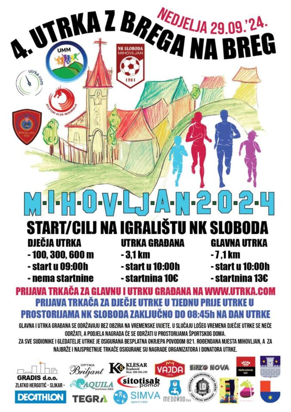 Proslava započinje u čast zaštitnika mjesta, Svetog Mihaela, u crkvi Sv. Ane u 11 sati. Istog će se dana održati i četvrta utrka „Z brega na breg“, koja je središnji događaj proslave i na kojoj se očekuje veliki broj sudionika i gledatelja. Dječje utrke počinju u 9 sati, dok je start glavne utrke i utrke građana zakazan za 10 sati. Dječje utrke (100, 300 i 600 m) te start/cilj glavne (7,1 km) i utrke građana (3,1 km) održat će se na nogometnom igralištu NK Sloboda, Prvomajska ul. br. 7. Sudionici će trčati ili hodati ulicama Mihovljana, uživajući u pogledu na grad Čakovec.