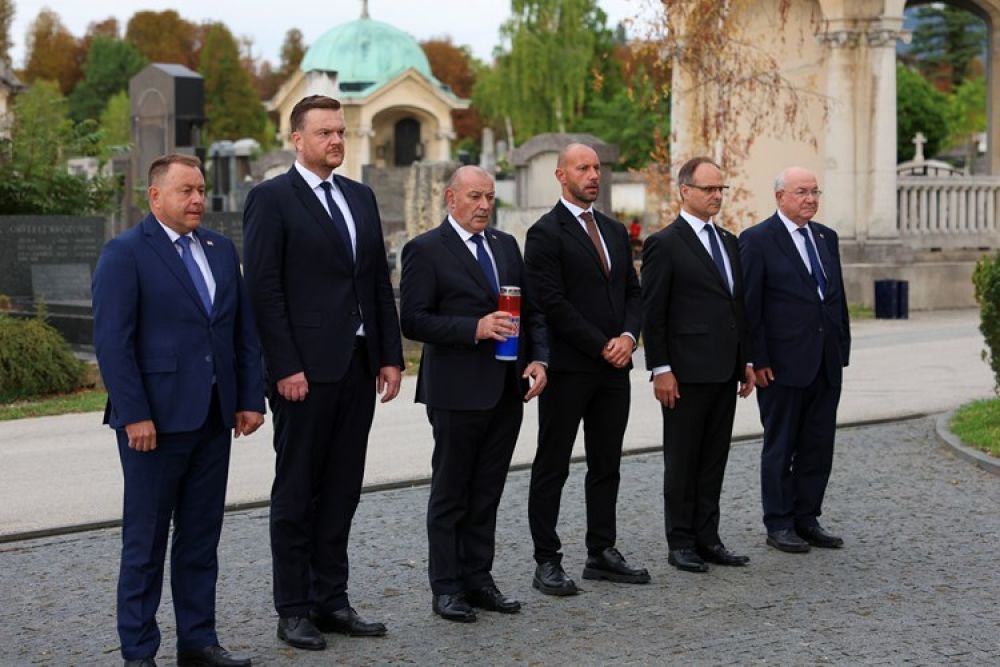 Tim su povodom jutros potpredsjednik Vlade i ministar hrvatskih branitelja Tomo Medved, potpredsjednik Vlade i ministar financija Marko Primorac, ministar pravosuđa, uprave i digitalne transformacije Damir Habijan, predstojnik Ureda predsjednika Vlade Zvonimir Frka-Petešić te posebni savjetnik predsjednika Vlade Mate Granić položili svijeće na Gradskom groblju Mirogoj - pred spomenikom Glas hrvatske žrtve - Zid boli, na Grobnici narodnih heroja, na grobu Brune Bušića, pred spomen-obilježjem hrvatskim žrtvama Bleiburga i križnih putova te na grobu prvog hrvatskog predsjednika dr. Franje Tuđmana.
