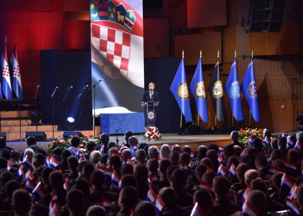 „I danas nastavljamo izgrađivati i razvijati Oružane snage Republike Hrvatske. Ne kao sredstvo prijetnje ili prisile, nego upravo kao jamac mira, slobode i prosperiteta Republike Hrvatske“, kazala je vrhovna zapovjednica Oružanih snaga RH istaknuvši kako je u proteklom razdoblju mnogo postignuto. U tom smislu, navela je postupno podizanje obrambenog proračuna kojim su se stvorili preduvjeti za povećano ulaganje u Hrvatsku vojsku, te vraćanje sjaja Hrvatskoj vojsci i dostojanstva svakom njezinom pripadniku, kroz poboljšanje uvjeta rada i života, povećano ulaganje u njihovu obuku i obrazovanje te ubrzano opremanje i modernizaciju.