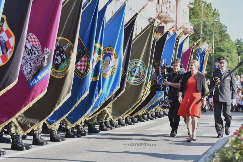 Kao prva hrvatska predsjednica danas imam čast, posebnu čast upravo zbog odgovornosti koja je dio institucije predsjednice Republike Hrvatske, u ime svih građana Republike Hrvatske pokloniti se duboko, iskreno i u duhu vjere svim braniteljima koji su dali svoje živote, zdravlje, onima koji su vlastitu djecu ostavili bez očeva, žene bez muževa, majke bez sinova, sestre bez braće, koji su svoje zdravlje dali za našu slobodu.Došla sam ovdje kako bih vama u ime sviju nas rekla hvala, mada znam da nitko od branitelja nije branio našu domovinu Hrvatsku da bi vam se zahvaljivalo, nego su mnogi od vas svoje živote dali nesebično da bismo mi danas mogli graditi i razvijati Hrvatsku, sačuvati svoj identitet i tradiciju, omogućiti novim generacijama prilike koje nam otvara sloboda koju ste nam vi izborili. Isto tako, imam potrebu reći da iako je ovdje mnogo političara, gdje ubrajam i sebe, s najvećom odgovornošću državnice, predsjednice Republike Hrvatske, da ova proslava nije zbog nas političara, nego smo tu pokazati poniznost i zahvalnost i skupiti dovoljno hrabrosti da se suočimo sa sobom i zapitamo se je li svatko od nas napravio sve da bi Hrvatska danas bila uspješnija, prosperitetnija, slobodnija za svakog Hrvata i Hrvaticu, svakog građanina naše domovine.