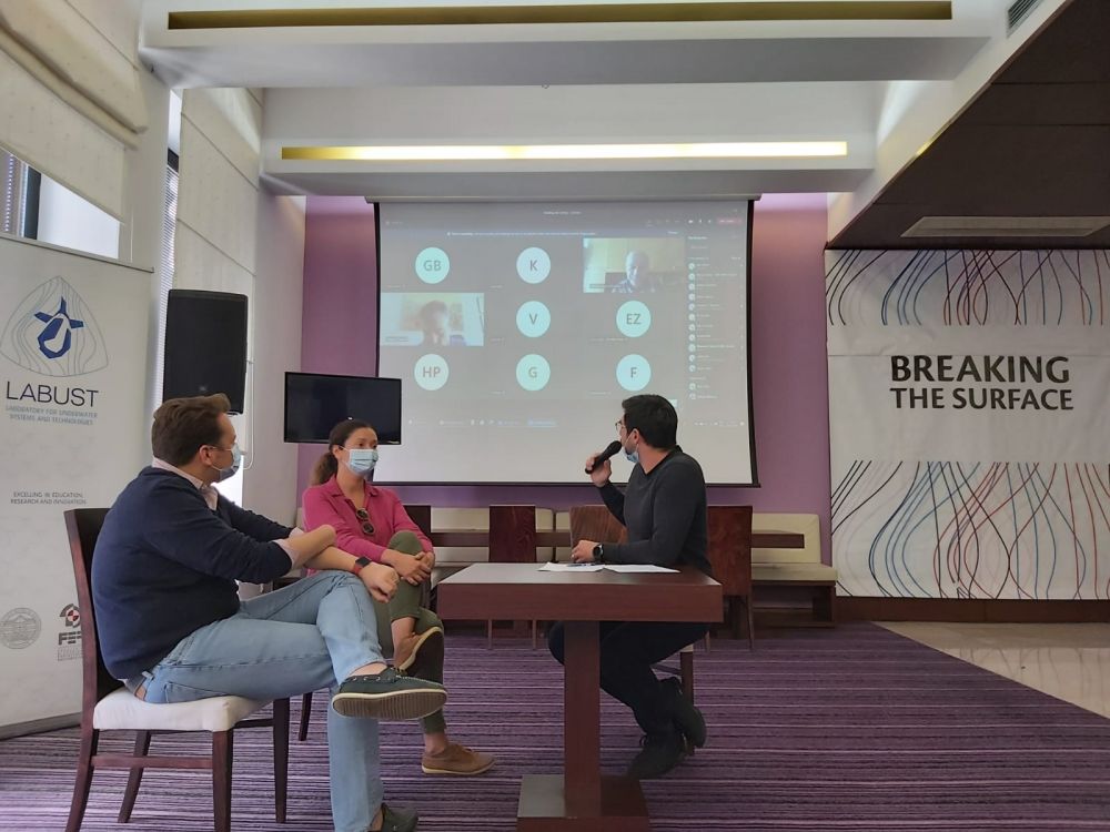 U raspravi su pod moderatorskom palicom Matea Ivanca iz Hrvatske gospodarske komore, što fizički, što virtualno, sudjelovali međunarodno priznati stručnjaci iz susjednih nam zemalja: Fantina Madricardo sa venecijanskog Instituta za istraživanje mora (ISMAR-CNR), Ivana Palunko sa Sveučilišta u Dubrovniku, Gregory Yovanof sa studija Informacijske tehnologije u Ateni, Massimo Caccia, s Instituta za morsko inženjerstvo Nacionalnog istraživačkog vijeća Italije (CNR-INM) i Nikola Mišković s Fakulteta elektrotehnike i računarstva (FER) Sveučilišta u Zagrebu.