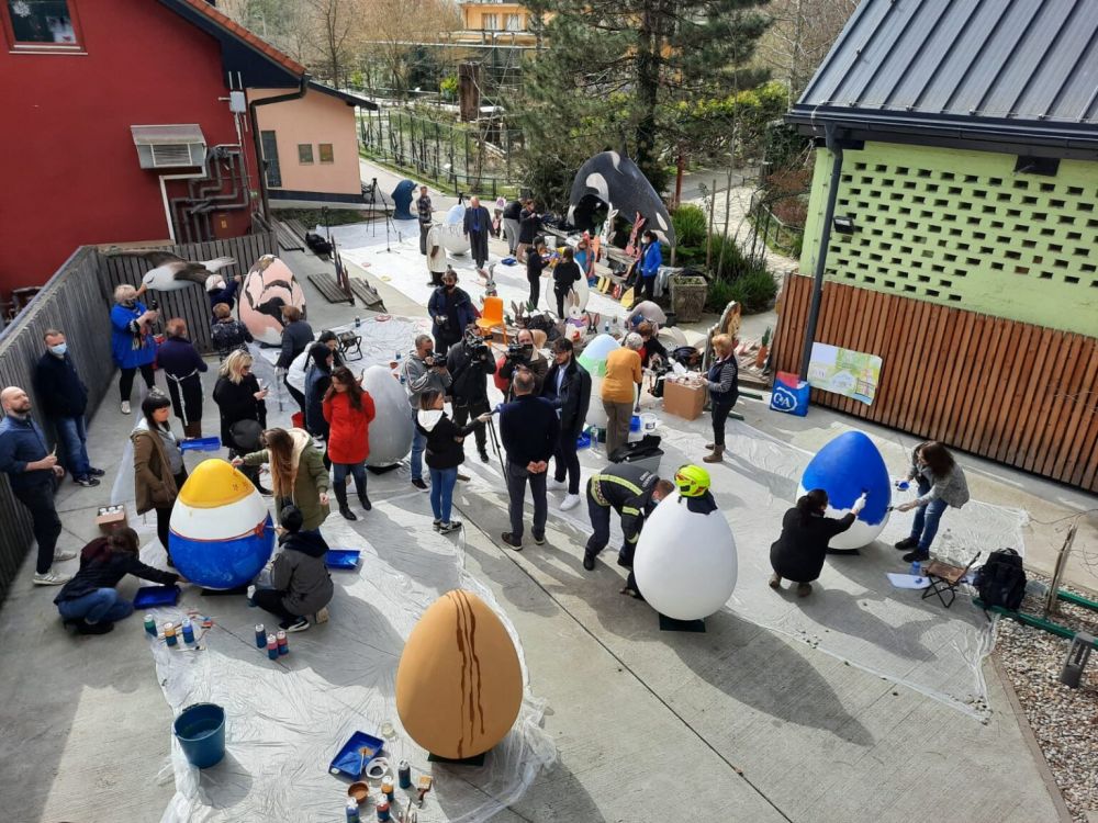 Zagrebački vatrogasci, umjetnici i kreativci oslikavaju deset velikih pisanica za Zoološki vrt grada Zagreba. Ta će uskršnja jaja krasiti Vrt tijekom Festivala proljeća u Divljem srcu grada.