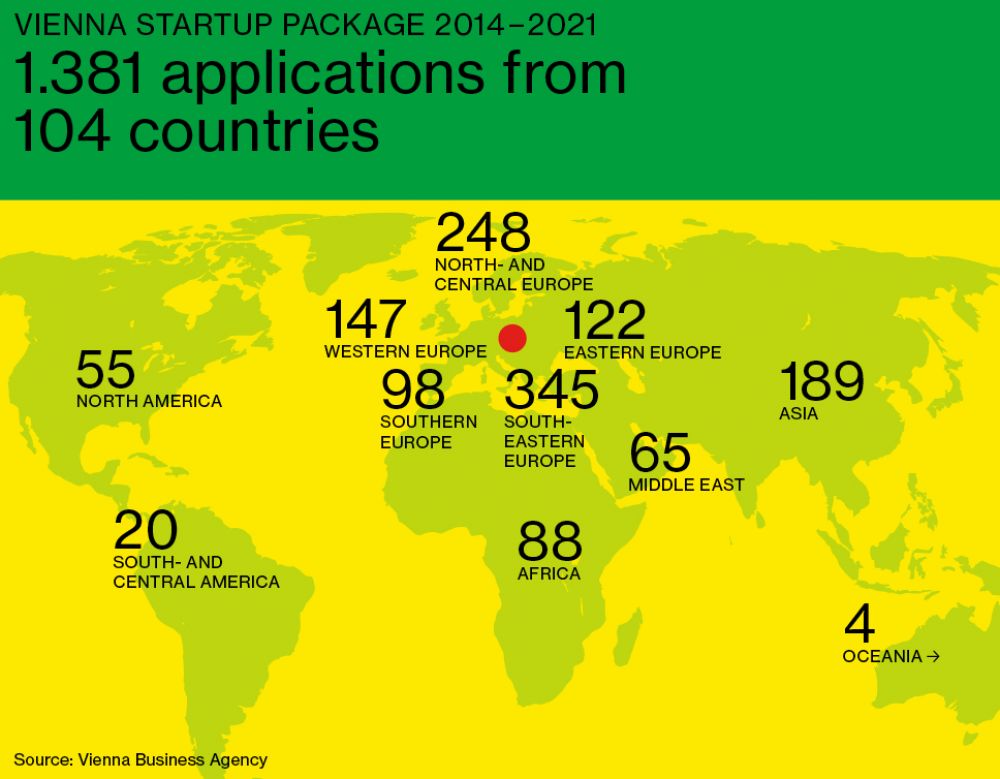 Otkako je pokrenuta inicijativa Bečke gospodarske agencije, na program se prijavio 1.381 startup iz 104 zemlje, a 108 ih je dosad imalo priliku upoznati ekosustav bečkih startupova. Najviše prijava bilo je iz Velike Britanije, njih 103, zatim iz Rumunjske iz koje se prijavilo 68 poduzeća te iz Izraela odakle je bio 61 zainteresirani startup. Značenje Beča kao gospodarskog pokretača u zemljama srednje i istočne Europe dodatno podcrtava činjenica da se iz te regije u posljednjih osam godina prijavilo čak 449 zainteresiranih startupova.