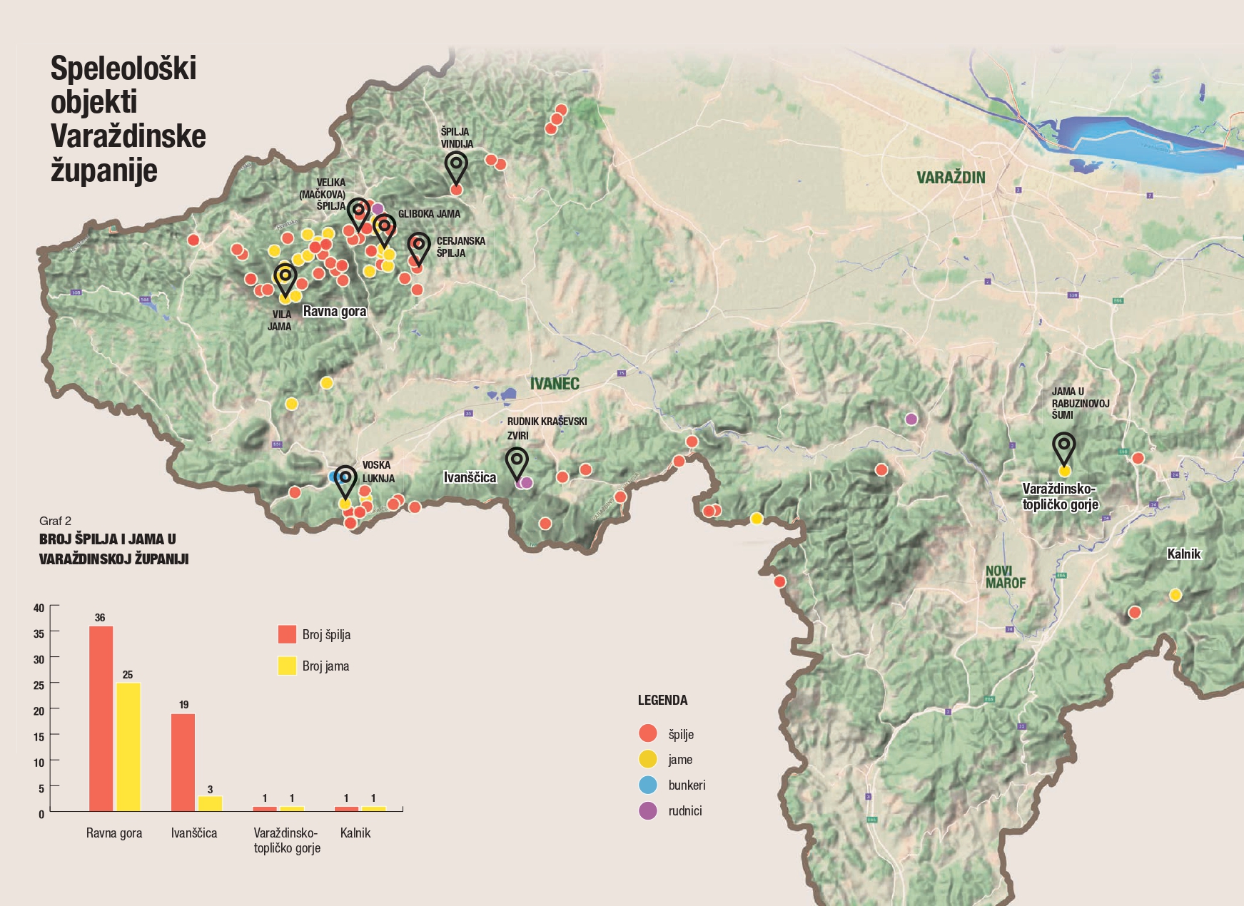 U Varaždinskoj županiji nalaze se 94 špilje, jame i drugi podzemni oblici, no to nije konačan broj jer se i dalje otkrivaju novi. Baš prije mjesec dana otkriven je posljednji 94. objekt, a riječ je o jami na Ravnoj gori kod Goranca.