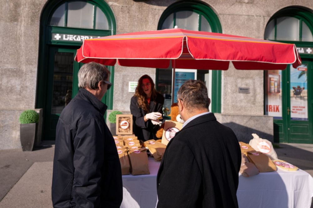 Na štandu glavne zagrebačke tržnice, Dolcu, u ponedjeljak ujutro nudile su se raznovrsne „usluge“ koje su se izravno referirale na negativne stereotipe o industriji PR-a. Tako su Zagrepčani od šarmantnog prodavača Tomislava Drapele, studenta odnosa s javnošću, mogli kupiti kilo PR-a, oglašavanje na sva zvona, medvjeđu uslugu, iskakanje iz paštete, mlaćenje prazne slame, pa čak i mačka u vreći. Predvidjeli su i sezonu kiselih krastavaca, muda pod bubrege i prodavanje magle.