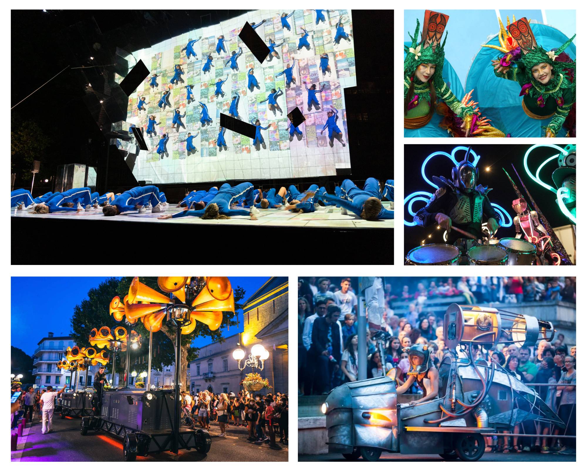 Simpatična obitelj performera, La Famiglia Mirabella, dolazi nam iz Italije. Nastupima u zraku, velikim osmijesima, akrobacijama, žongliranjem, a sve uz mnoštvo emocija, zasigurno će privući pažnju posjetitelja. Francuz Nicolas Bras svirat će na čak 18 različitih instrumenata koje je izradio recikliranjem raznih materijala. Jeste li se ikad susreli sa svjetlećim robotima na štulama? Ekipa Global Drummers-a priprema i pravo bubnjarsko iznenađenje. Posjetiteljima Špancirfesta već su dobro poznati štulaši iz skupine Stelzen Art koji nam ove godine stižu iz morskih dubina. Iako su vodena bića jednako su šarmantni i na kopnu. Tu su i njihovi prijatelji performeri Special Conquest na pneumatskim štulama, a prati ih neizostavni član ovog zanimljivog trija sa svojim čudnovatim vozilom, koje stvara male svemirske bljeskove.