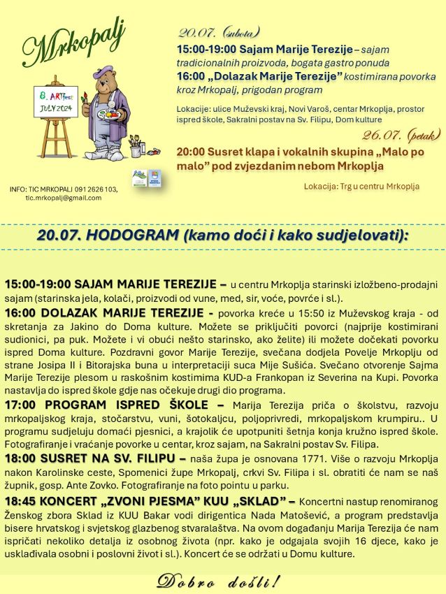Nedaleko Begovog Razdolja i Delnica na putu prema Rijeci nalazi se malo mjesto Mrkopalj sa svega tisuću žitelja raštrkanih u 6 naselja. Tamo se odnedavno održava zanimljiva manifestacija kojoj je cilj spajanje različitih vrsta umjetnosti, sportskih i zabavnih događaja uz nezaobilazni šarm goranskoga kraja. Proteklog je vikenda tako održan 8. Artfest uoči 240. godišnjice dobivanja povelje koju je Mrkoplju dodijelila carica Marija Terezija davne 1785. godine. Uz brojne goste uglavnom iz Bakra, Severina na Kupi i mjesta iz okruženja, ove su godine na Artfestu nastupile i članice udruge Starinski žmaki iz Brezničkog Huma predstavivši starinske gastrodelicije našega podneblja.