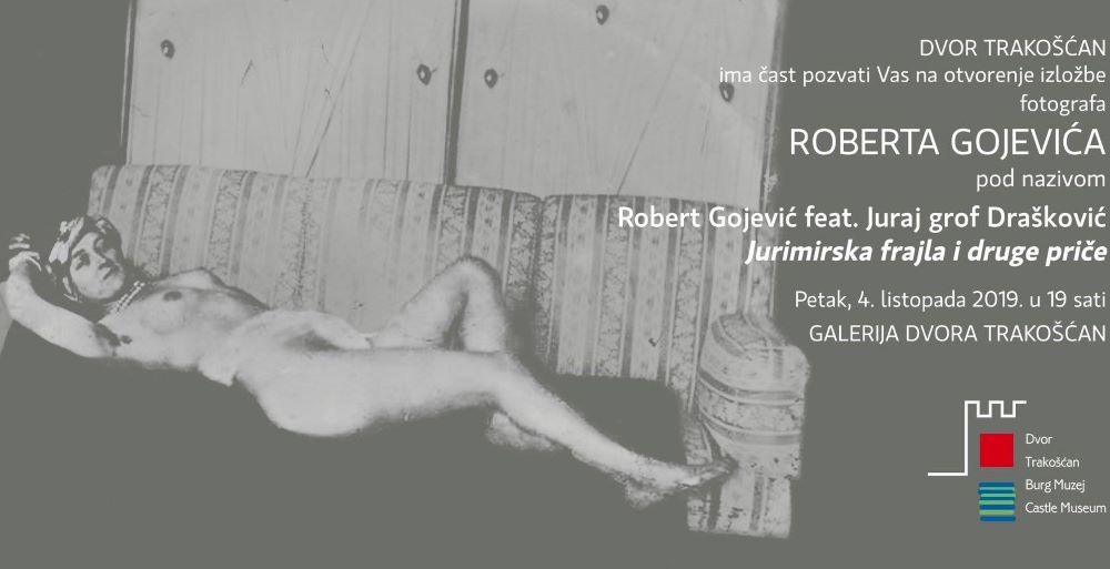 Nova izložba fotografa Roberta Gpjevića pod nazivom "Robert Gojević feat. Juraj grof Drašković - Jurimirska frajla i druge priče" bit će otvorena u petak, 4. listopada u 19 sati u galeriji Dvora Trakošćan. Na izložbi će biti prikazane fotografije ženskih aktova za koje je Robert Gojević inspiraciju pronašao u najstarijem hrvatskom aktu "Jurimurske frajle" iz 1865. godine, malom remek-djelu koji je snimio podmaršal grof Juraj Drašković (1804.-1889.).Izložba ostaje otvorena do 24. studenoga 2019. godine.