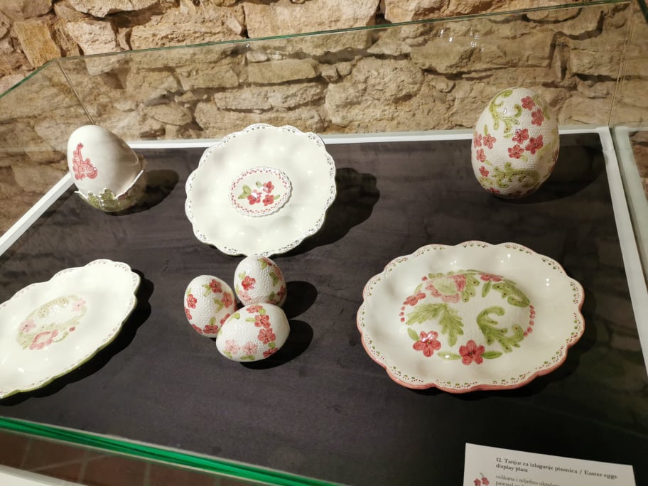 Dio izložaka je neoslikan. Ističu se bjelinom i dekorativnom strukturom s karakterističnim florealnim motivima. Izloženi predmeti namijenjeni su svakodnevnoj upotrebi, poput šalica za kavu ili čaj, zdjelica za sladoled, voće ili kompot, zdjela, tanjura i pladnjeva različitih dimenzija za posluživanje kolača i torta, posuda s poklopcima, vaza za suho i svježe cvijeće, dražesnih ukrasnih cekera, aroma lampica za eterična ulja, dok nam je Uskrs predstavljen malenom zbirkom pisanica. Izložbom vedre, proljetnim bojama oslikane keramike započinjemo ovogodišnji izložbeni ciklus u prostoru Staroga grada.