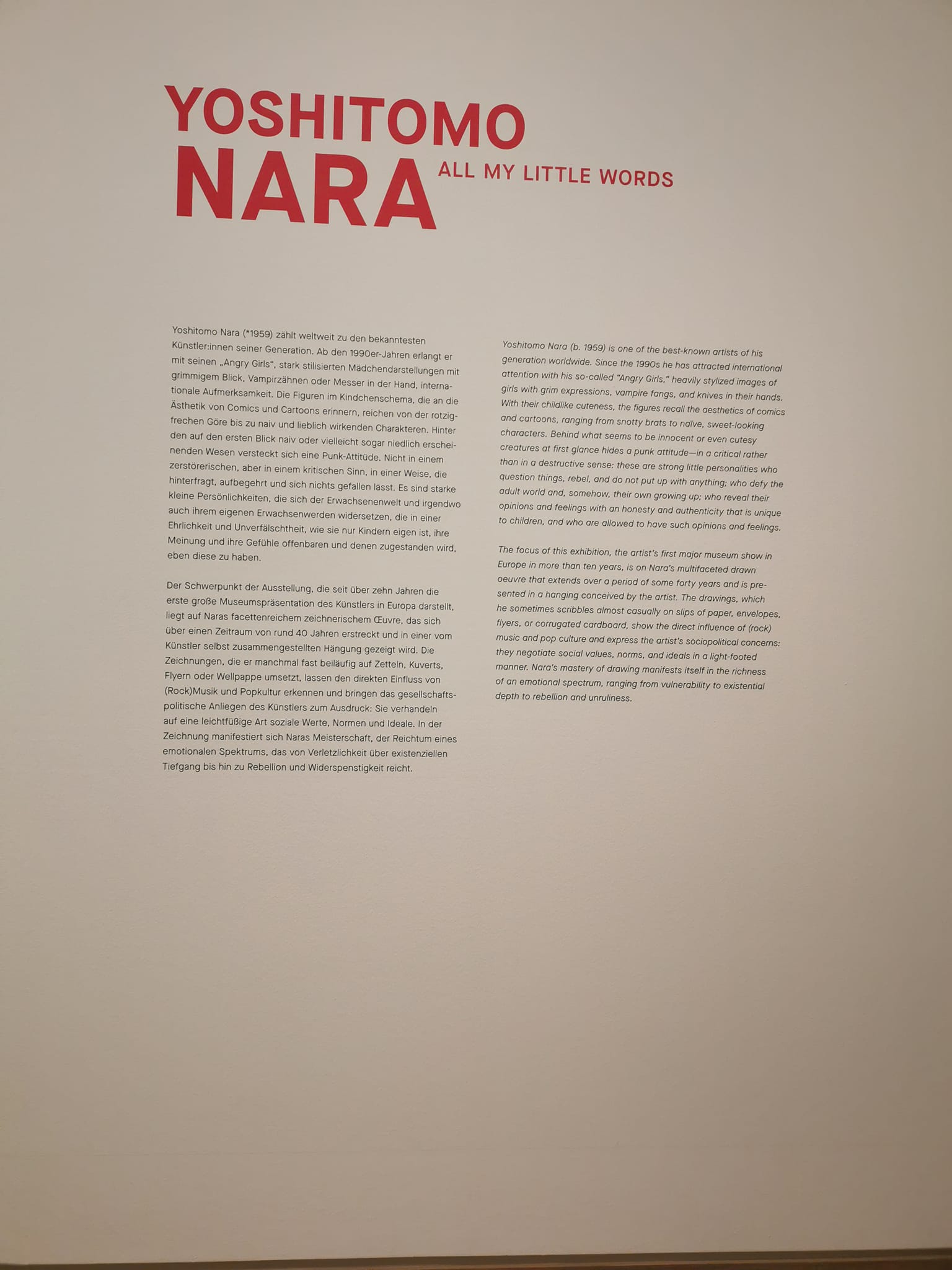 Prof. dr. Klaus Albrecht Schröder, direktor bečkog muzeja Albertina, na press konferenciji održanoj 9. svibnja, najavio je današnje otvorenje izložbe u novom izložbenom prostoru Albertina Moderna (otvorenom 2020. i namijenjenom modernoj umjetnosti) s gostujućim umjetnikom Yoshitomo Nara, danas najpopularnijim japanskim umjetnikom čija djela pobuđuju ogromnu pozornost svjetske kulturne javnosti, a u prodaji postižu vrtoglave milijunske iznose.