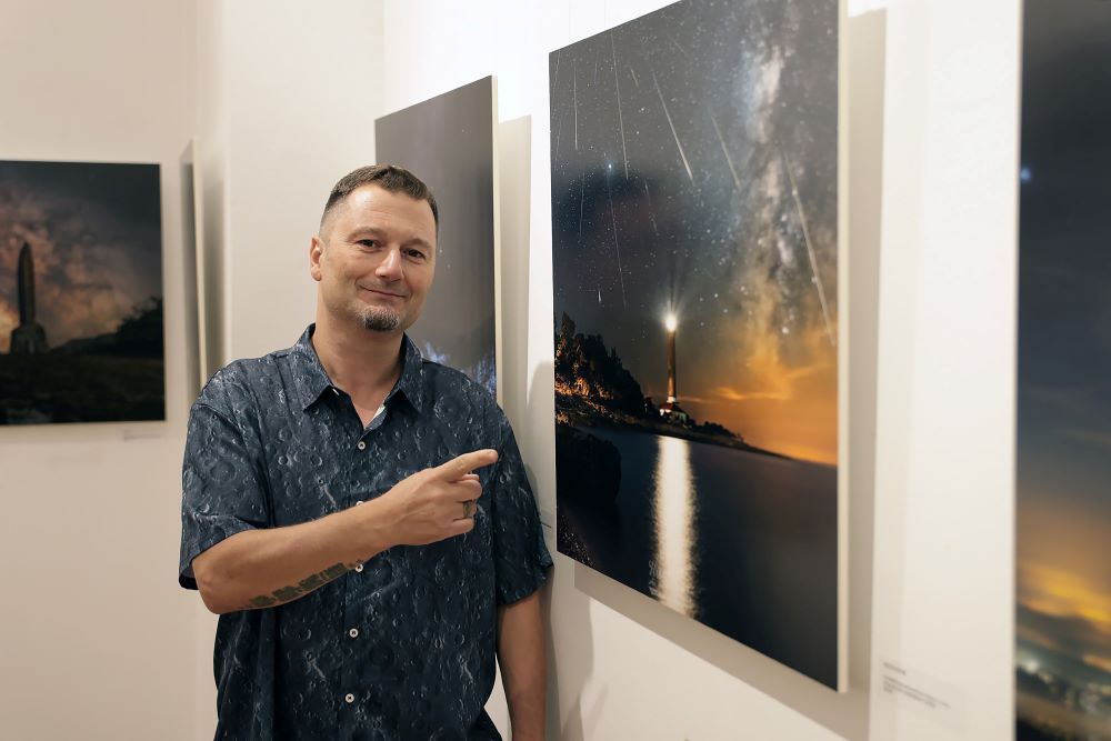 Kada ste zadnji puta bili na nekome mračnome mjestu, u šumi, na planini ili livadi izvan grada i daleko od svjetlosnog onečišćenja i samo – gledali zvijezde? Uživali u noćnome nebu? Nažalost, sve smo manje u takvim prilikama, a sve više prikovani za gradski asfalt i neizostavne ekrane. Srećom, postoje fotografi koji nam donose ljepote prirode upravo na ekrane naših mobitela, na društvene mreže ili pak u javne prostore koje posjećujemo. I dok su izložbe dnevnih pejzaža, prirode i životinja relativno česti, vrlo se rijetko mogu vidjeti noćne astrofotografije. Kada se i pojave, riječ je uglavnom o specijaliziranim astronomskim izložbama tzv. dubokog svemira. Autor izložbe Branko Nađ noćno nebo uvijek snima u RAW formatu, bira noći kada nema Mjeseca, ili snima sami Mjesec, ali i dakako, prati vremenske prognoze. Služi se aplikacijama kojima unaprijed možete isplanirati zalaske i izlaske Sunca, Mjeseca, položaj Mliječne staze, kiše meteora itd…