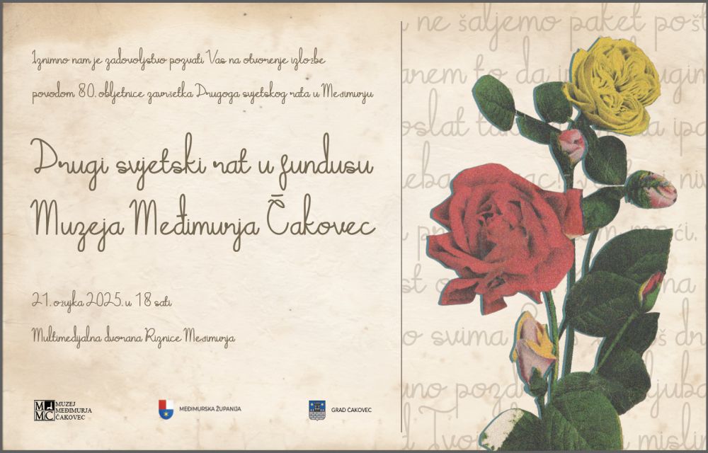 U povodu 80. obljetnice završetka Drugoga svjetskog rata u Međimurju, Muzej Međimurja Čakovec u petak 21. ožujka u 18 sati otvara tematsku izložbu pod nazivom Drugi svjetski rat u fundusu Muzeja Međimurja Čakovec.
