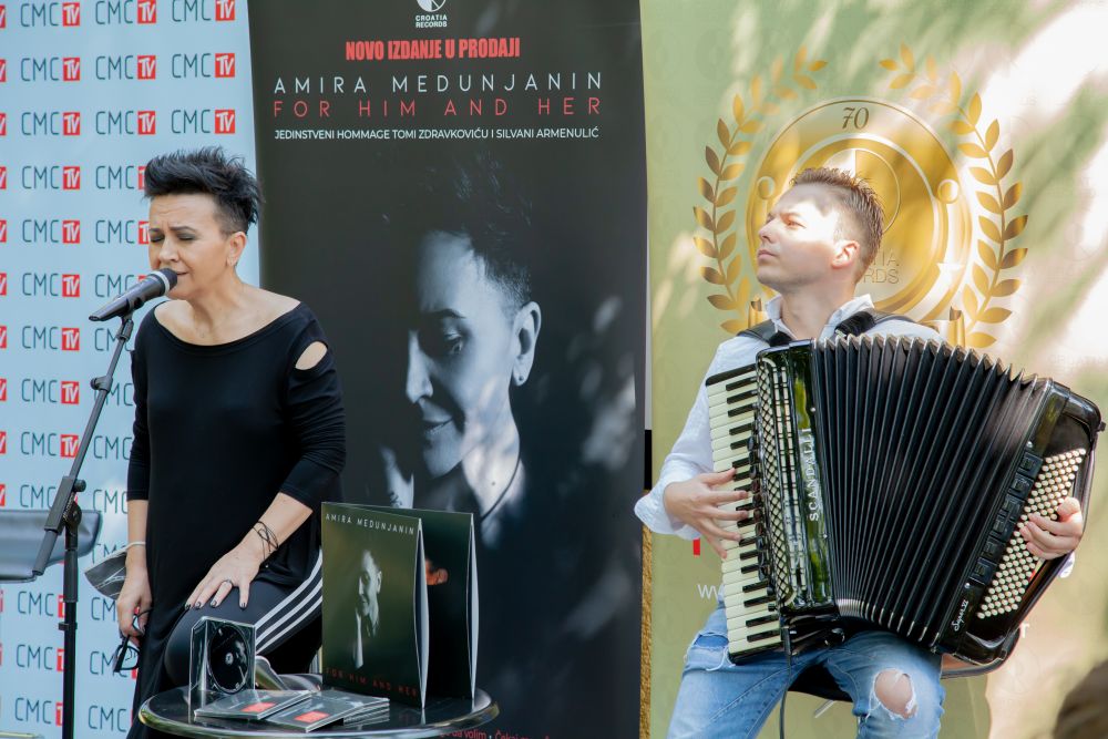 Jučer je u vrtu diskografske kuće Croatia Records u zagrebačkoj Dubravi, world music diva Amira Medunjanin predstavila novi album For Him and Her, jedinstveni hommage legendama narodne glazbe, Tomi Zdravkoviću i Silvani Armenulić. Album u izdanju Croatia Recordsa objavljen je sredinom lipnja, a realiziran je u suradnji s partnerom projekta Stars & More.