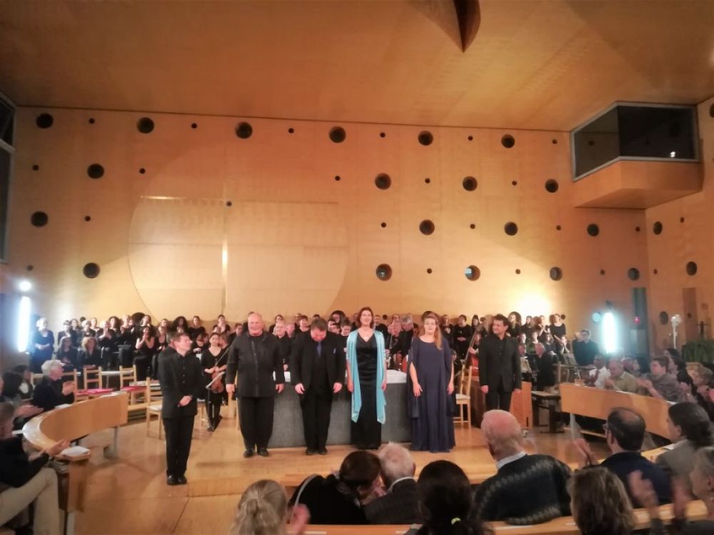 Ensemble Koinonía održava svoje koncerte u modernom zdanju Donaucity Kirche u Beču u neposrednoj blizini zgrade Ujedinjenih naroda. Župnik-domaćin je prije prvog i drugog dijela koncerta dao kratak uvod u samo djelo. Toliko nas se dojmilo što je svoje misli temeljio na Bachovoj simbolici brojeva, npr. Bach je u stavku Crucifixus etiam pro nobis (“raspet također za nas”) taj tekst ponovio 14 puta. Kad se Bachovo prezime prebroji tako da se za slovo A uzme jedinica, slovo B dvojka… dođe se do brojke 14. Skladajući taj stavak kao da je kompozitor htio reći: “raspet za mene, za Bacha, koji ovo pišem…” Cijeli je bečki izvedbeni korpus, u kojem je ovoga puta svirao orkestar za ovu priliku skupljenih bečkih svirača, osjetio strahopoštovanje prema toj intimnoj vezi skladatelja i Onoga kome usmjerava svoju vjerničku dušu.