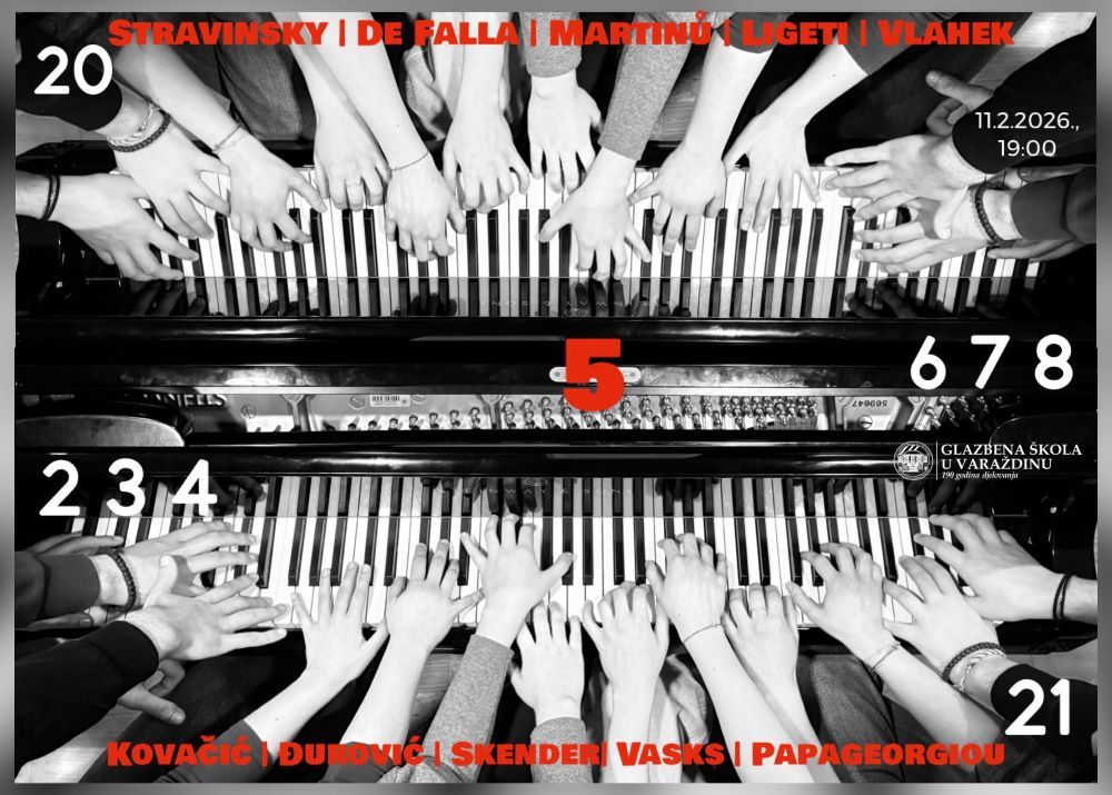 Varaždinski koncert okupit će studente koji su sudjelovali u radu predmeta od 2021. godine do danas. Kao i uvijek, program i skladatelji nisu odabrani slučajno, a koncert je zamišljen kao svečana i razigrana proslava ne samo obljetnice predmeta, nego i nekoliko važnih rođendana i godišnjica koje će biti obilježene glazbom. Publiku očekuje raznolik i dinamičan program suvremene glazbe, od skladbi za dvije do čak osam ruku. Koncert donosi energiju mladih izvođača, otvorenost prema suvremenom glazbenom jeziku i slavlje zajedničkog stvaranja.