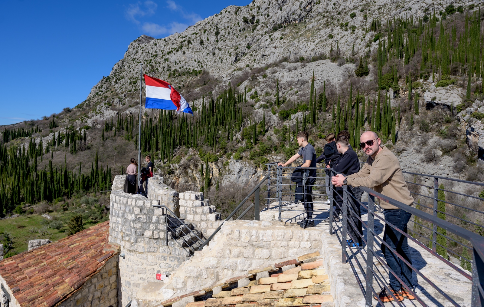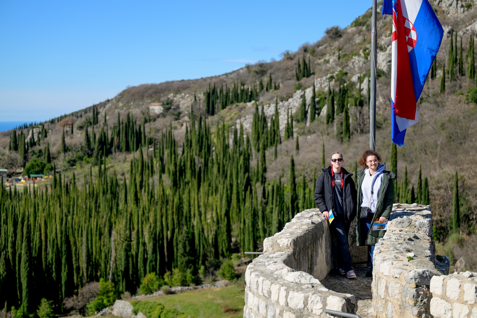 Boravak na krajnjem jugu Hrvatske bio je i iznimno vrijedno kulturno i edukativno iskustvo. Učenici i nastavnici škole, u pratnji župana Varaždinske županije Anđelka Stričaka, posjetili su povijesni Sokol grad, impresivnu srednjovjekovnu utvrdu koja stoljećima bdije nad Konavlima kao simbol povijesne postojanosti i identiteta. Upoznavanje s bogatom poviješću tvrđave i njezinim strateškim značajem pružilo je učenicima dublje razumijevanje kulturnog i povijesnog konteksta prostora u kojem su nastupali, dodatno naglašavajući simboliku susreta sjevera i juga. Posebno snažan dojam ostavio je i posjet Prevlaci, najjužnijoj točki Republike Hrvatske, gdje se u jedinstvenom krajoliku susreću more, povijest i prostor. Ovaj trenutak zajedništva bio je snažna simbolička potvrda teritorijalne i kulturne povezanosti zemlje, ali i prilika za druženje, razmjenu dojmova i stvaranje uspomena koje će trajno obilježiti sudionike projekta.