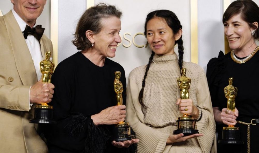 Na 93. dodjeli Oskara koja je održana s dva mjeseca odgode zbog pandemije koronavirusa te se održavala pod strogim epidemiološkim mjerama "Zemlja nomada" osvojila je tri zlatna kipića - za najbolji film, najbolju režiju i glavnu glumicu, a po dva su Oscara pripala filmovima "Otac", "Juda i crni mesija". Zvuk metala "," Mank "," Ma Rainey: Majka plavih "i animirani film" Duša ".