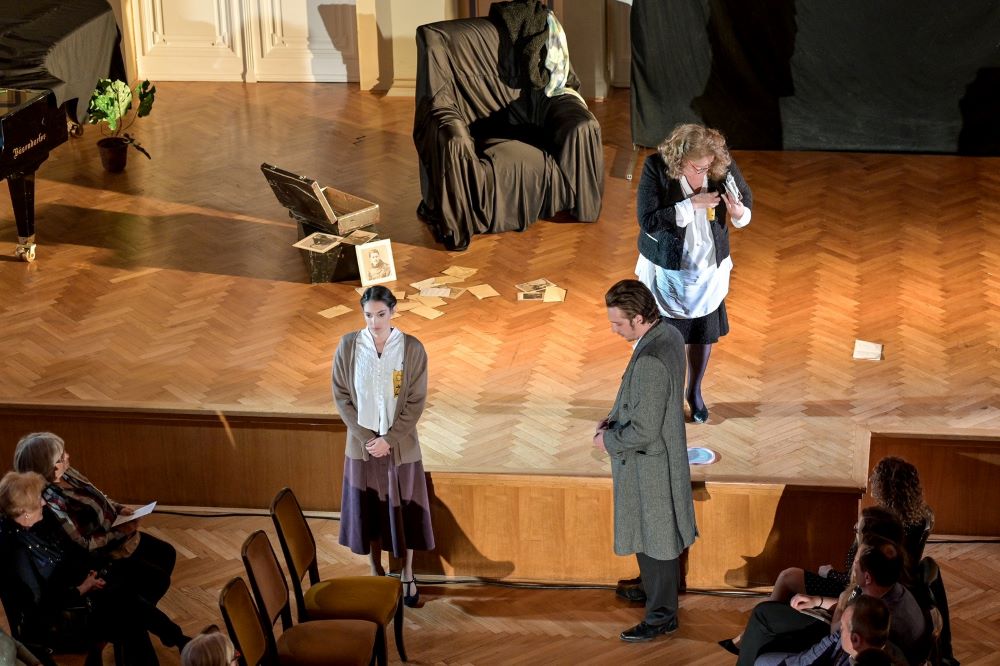 Četvero glumaca varaždinskog HNK: Elizabeta Brodić, Karlo Mrkša, Gordana Slivka i Zvonko Zečević, uz violončelista Mateja Ilčića, dočarat će doba u kojem je ljudskost bila na najvećoj kušnji. Predstava je nastala prema proznom djelu Jasminke Domaš, dramaturški ju je osmislila i režirala Sanja Ivić, autor glazbe je Davor Bobić, kostime je odabrala Žarka Krpan, a oblikovatelj video projekcija je Zlatko Milec.