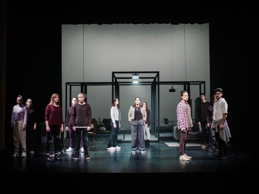 Predstava u HNK u Varaždinu, postavljena je na inicijativu intendantice Senke Bulić, dok je roman još nastajao i što je rijetkost u nas, dolazi paralelno s romanom. Praizvedena je ove subote, 14. listopada, u režiji nagrađivanog Ivana Plazibata. HNK Varaždin predstavu je praizvelo u koprodukciji s HNK-om Ivana pl. Zajca iz Rijeke, a okupila je ogroman ansambl pojačan mladošću jer uz izvrsne glavne glumce Deu Presečki i Karla Mrkšu, Hanu Hegedušić, Ljiljanu Bogojević, Ljubomira Kerekeša... u predstavi igraju i polaznici kazališnog studija mladih. I cijela predstava plod je sjajne ekipe na čelu s redateljem Plazibatom koji je s minimumom scenografije ali dobro odabranom ekipom glumaca i izvrsnom dinamikom radnje uspio uprizoriti još jedno remekdjelo. Predstava je to koju treba gledati, ne da bismo u njoj uživali nego da kroz nove uvide i sami mijenjamo sebe, a time i svijet.