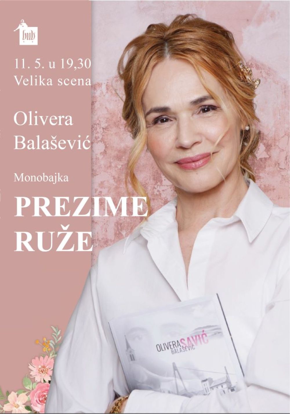 U subotu, 11. svibnja s početkom u 19,30 sati na Velikoj sceni možete pogledati mono-bajku Olivere Balašević "Prezime ruže".