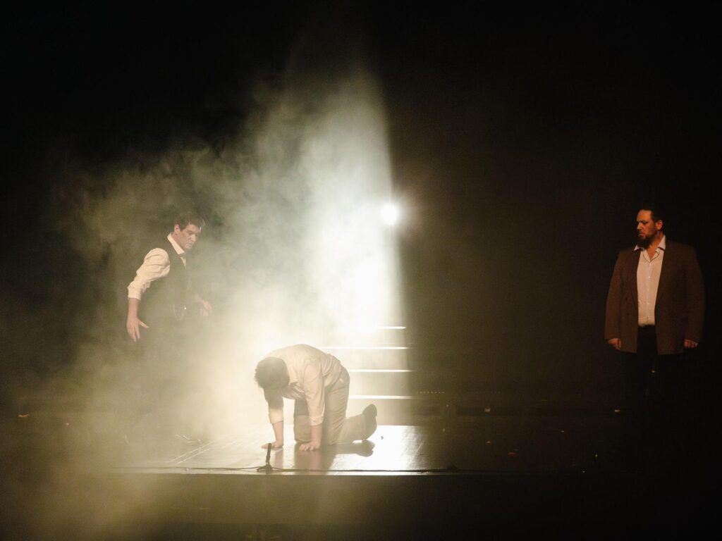 U operi nastupaju Berislav Puškarić (otac), Mislav Lucić (mlađi sin), Tia Pikija (zaručnica mlađeg sina), Matija Meić (stariji sin), Martina Menegoni (Rada, supruga starijeg sina), Emilia Rukavina (Naomi, bludnica), Benjamin Šuran (krčmar), Jurica Jurasić Kapun (trgovac), Luka Šopar (svinjar), Šimun Šopar (zabavljač). Glazbu izvode Varaždinski komorni orkestar i Zbor “Chorus angelicus” Varaždin.