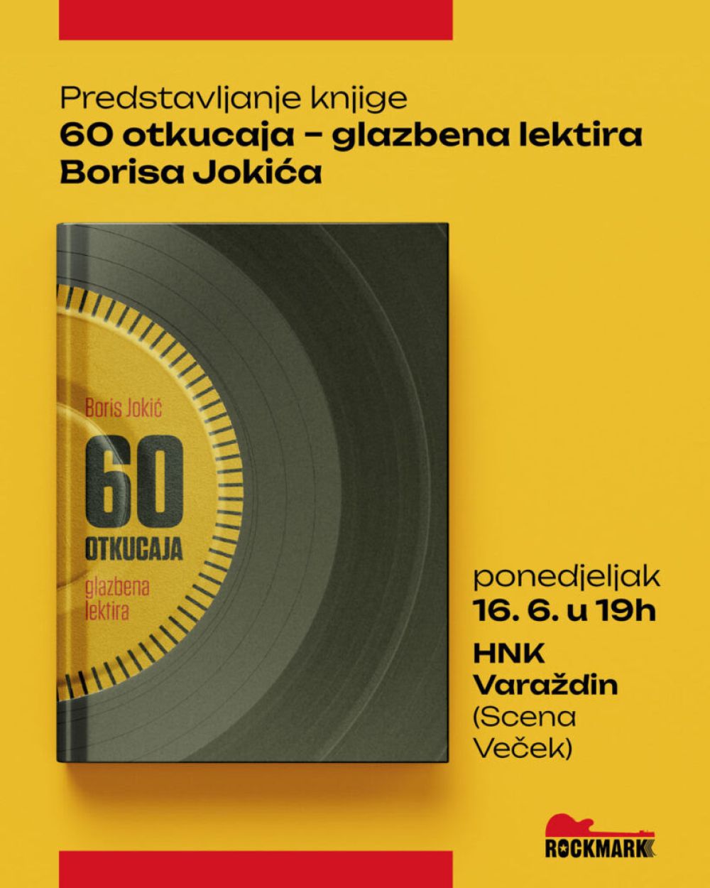 Predstavljanje knjige 60 otkucaja – glazbena lektira Borisa Jokića odžava se u ponedjeljak 16. lipnja u 19 sati, na Sceni Veček, HNK Varaždin.