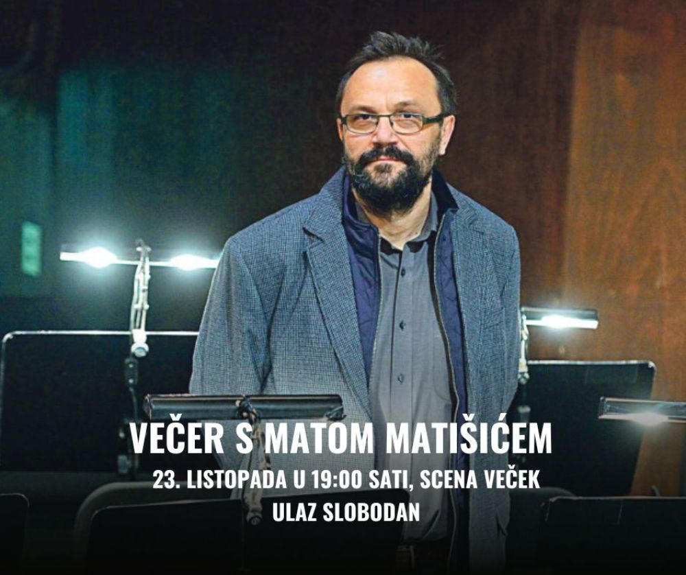 Prije premijere - glazbenik i dramatičar o putu od rukopisa do pozornice i o glazbi koja njeguje njegove priče. Razgovor s Matišićem vodit će Filip Kušter, a ulaz na književno-glazbenu večer je slobodan. Mate Matišić, dramatičar, scenarist i glazbenik, u četvrtak 23. listopada u 19 sati gostovat će na književno-glazbenoj večeri u Sceni Veček (bivša knjižnica) HNK u Varaždinu. Njegovo dramsko djelo Bljesak zlatnog zuba uskoro će imati premijeru na Velikoj sceni HNK u Varaždinu (24. listopada) pa je ovo prilika da se pobliže upozna Matišićev rad u sferi drame, književnosti i glazbe.