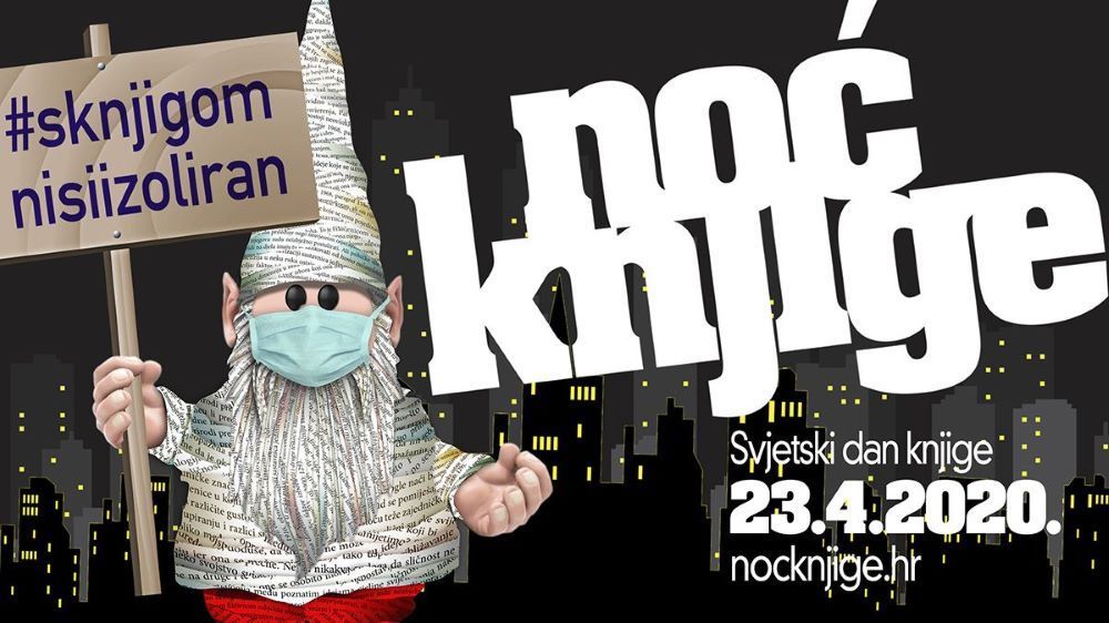 Deveta Noć knjige 23. travnja donosi gotovo 200 virtualnih programa i sadržaja knjižnica, antikvarijata, osnovnih i srednjih škola, kazališta, ilustratora, prevoditelja, pisaca i drugih kreativaca, otvorenje manifestacije na HTV-u i društvenim mrežama, a ovogodišnje zaštitno lice manifestacije patuljak Čituljak poručuje: S knjigom nisi izoliran!