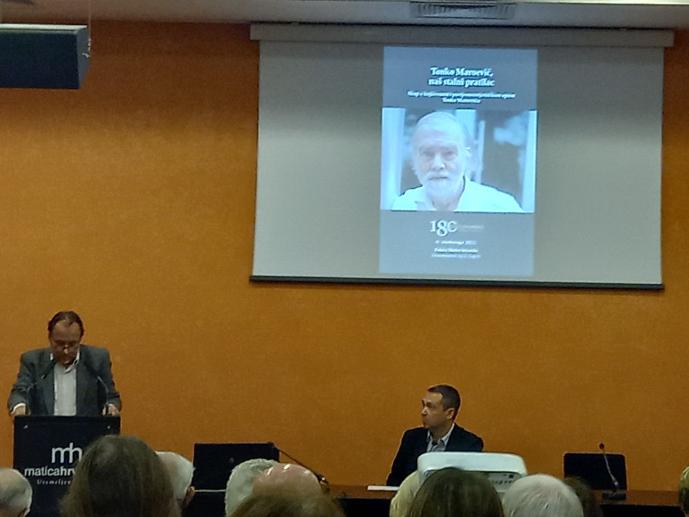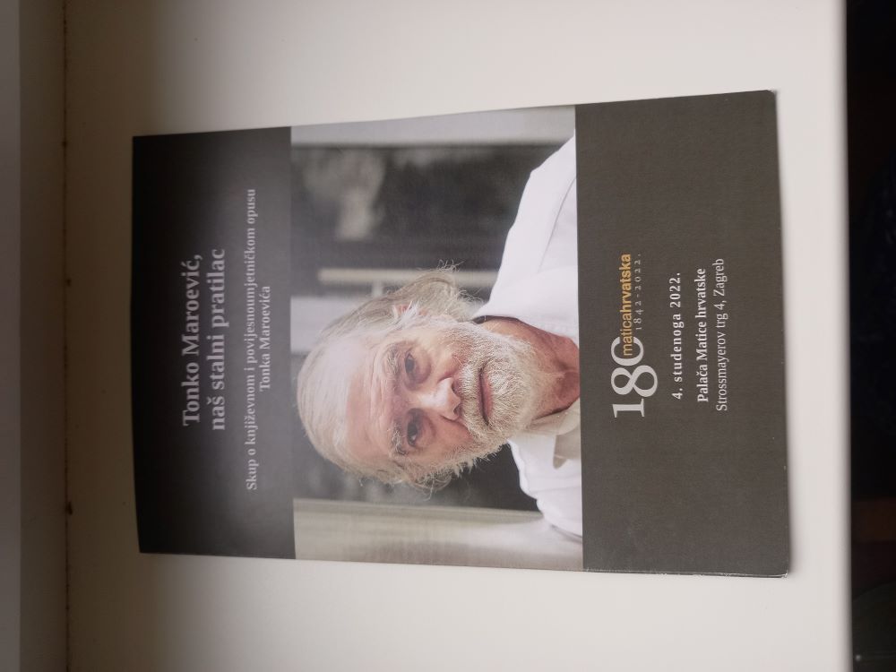 "Tonko Maroević, naš stalni pratilac" – tako je nazvan skup o književnom i povijesnoumjetničkom opusu akademika Tonka Maroevića koji je održan u petak, 4. studenoga, u Palači Matice hrvatske u Zagrebu. Najprije su na otvorenju skupa govorili predsjednik Matice hrvatske Miro Gavran, glavni urednik Matičinih izdanja Luka Šeput, tajnik Razreda za književnost HAZU Pavao Pavličić i ravnateljica Instituta za povijest umjetnosti u Zagrebu Katarina Horvat Levaj.