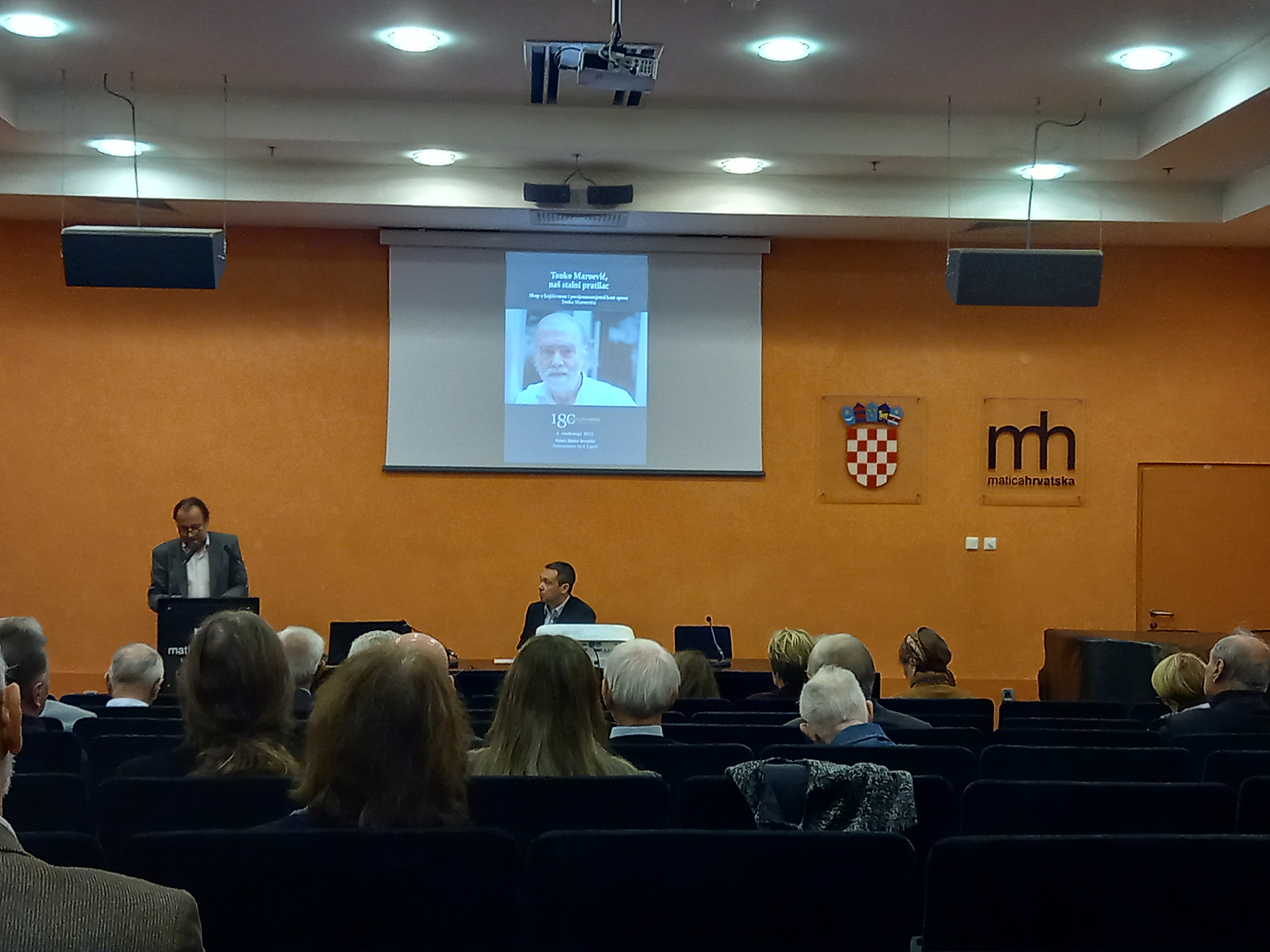 - Maroević je s Maticom počeo surađivati još daleke 1966. godine - spomenuo je Gavran te nastavio da je '1970. bio član suradnik Matice hrvatske, a 1994. bio je izabran u Glavni odbor MH. Tonko Maroević bio je i pročelnik Matičina Odjela za književnost, potpredsjednik Matice te član uredništva Stoljeća hrvatske književnosti i najplodniji autor Matičina dvotjednika Vijenca. Govorio je kako Matica ima posebno mjesto u njegovu srcu pa je nesebično posvetio znatan dio svoga vremena i stvaralačke energije ne samo središnjici Matice hrvatske nego i njezinim ograncima, gdje je držao predavanja ili predstavljao knjige', rekao je, uvodno, s dužnim poštovanjem, sadašnji predsjednik MH Miro Gavran.