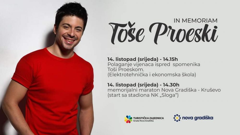 Toga jutra, 16.10.2007., vrijeme je stalo, a cijela regija ostala je u šoku. Punih trinaest godina prošlo je, otkako nas je prerano napustio čovjek anđeoskog glasa, Toše Proeski. Čovjek, koji gotovo nikada nije skidao osmijeh sa lica, svojim glazbenim djelima, ali i svojim humanim gestama, pronašao je put do srca svih onih koji su ga poznavali, ali i onih koji nisu. Svatko od nas na svoj način prisjeća se njegova lika i djela. Danas, 14.10. u 14:15h, u Novoj Gradiški, ispred Elektrotehničke i ekonomske škole, položiti će se vijenci ispred Tošinog spomenika, a potom će u 14:30h krenuti tradicionalni maraton put Kruševa. U petak 16.10., na sam dan tužne obljetnica, u Zagrebu će biti otvorena kapelica na Rokovom perivoju. Svi kojima Toše znači i nose ga u srcu, taj dan mogu doći od 17h do 18h, upaliti svijeću za njegovu dušu. Ni za života, ni danas, ne postoji čovjek koji za Tošu, nije imao samo pohvale. Njegove riječi, ‘Ne želim da mi skidate kapu, samo želim da se ponosite mnome.’, ostati će zauvijek urezane u srcima svih koji su ga osobno poznavali, te brojnih obožavatelja i štovatelja, https://youtu.be/VMT50KhLlRw. Trinaest dugih godina kasnije Tošine riječi, ‘Ve Sakam Site’ (Sve Vas Volim), pokazuju koliko je veliko srce imao skromni mladić, koji je svojim djelima uvijek nesebično pomogao onima kojima je bilo najpotrebnije. |
