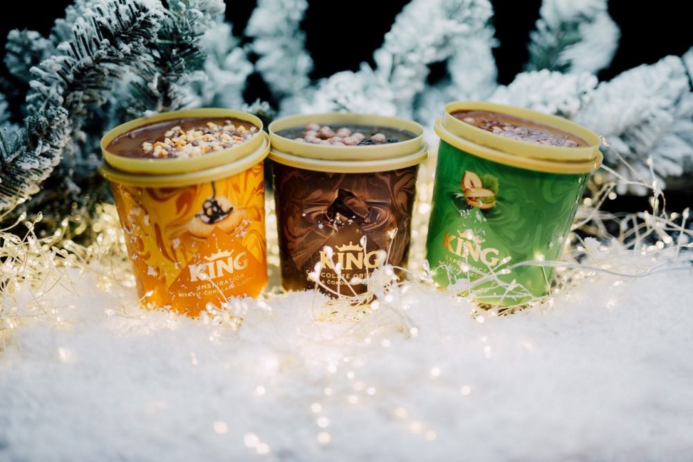 Nove King čaše kriju tri okusa od kojih je svaki obogaćen jedinstvenim punjenjem te preljevom u obliku diska na vrhu s finim posipima. King Chocolate Obsession kombinacija je bijele i mliječne čokolade s komadićima, King Experience fini je sladoled okusa pistacije i lješnjaka s komadićima lješnjaka, a King Inspiration čini spoj sladoleda s okusom biskvita i komadićima keksa te sladoleda od čokolade i lješnjaka.