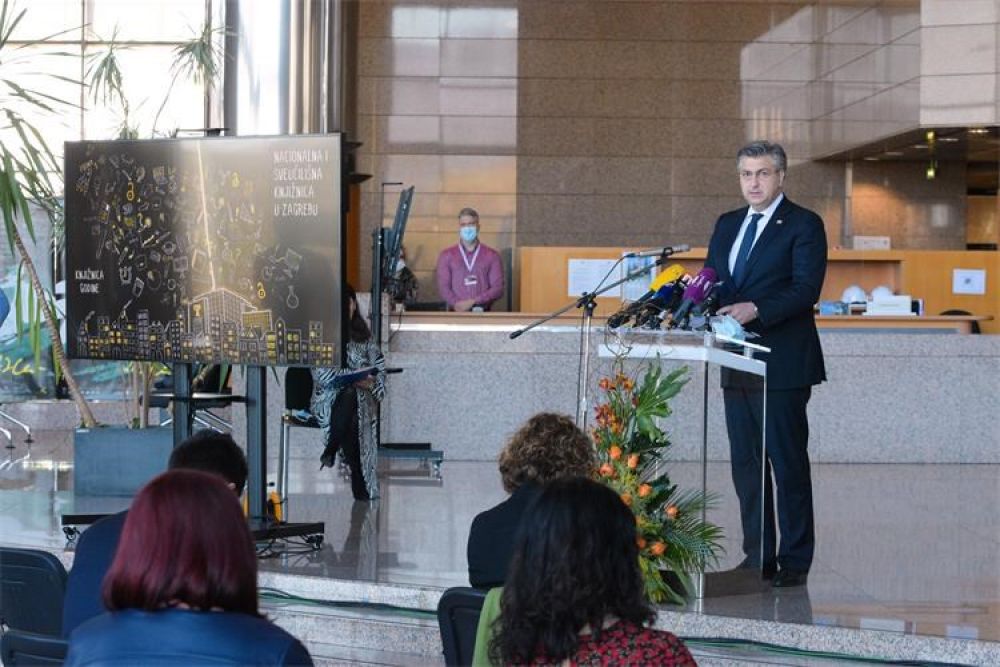 Prošla je godina bila obilježena i hrvatskim predsjedanjem Vijećem Europske unije. Na šest mjeseci imali smo namjeru da se cijela Europa u političkom smislu preseli u Hrvatsku i da se preseli upravo ovdje u Nacionalnu i sveučilišnu knjižnicu koju smo s namjerom, ciljem i poštovanjem odabrali kao središnju točku naših aktivnosti u tom šestomjesečnom razdoblju. I dosita prva dva mjeseca bila su i dom većine susreta i sastanaka europskih čelnika, a ulaganja koja smo pritom napravili u Nacionalnu i sveučilišnu knjižnicu dovršila su projekt koji je započet prije puno godina, gdje je prvi dio otvoren '95 godine, u vrijeme predsjednika Tuđmana. I na taj način smo 25 godina kasnije završili projekt izrazito važan za hrvatsku kulturu, hrvatsko sveučilište i hrvatsku baštinu u punom smislu tu riječi, ali učinili Nacionalnu i sveučilišnu knjižnicu i kongresnim centrom s najmodernijim kapacitetima da ugosti najviše dužnosnike iz svijeta i Hrvatske. Stjecajem prilika Nacionalna i sveučilišna knjižnica je i dom za održavanja sjednica Vlade praktički već skoro godinu dana.