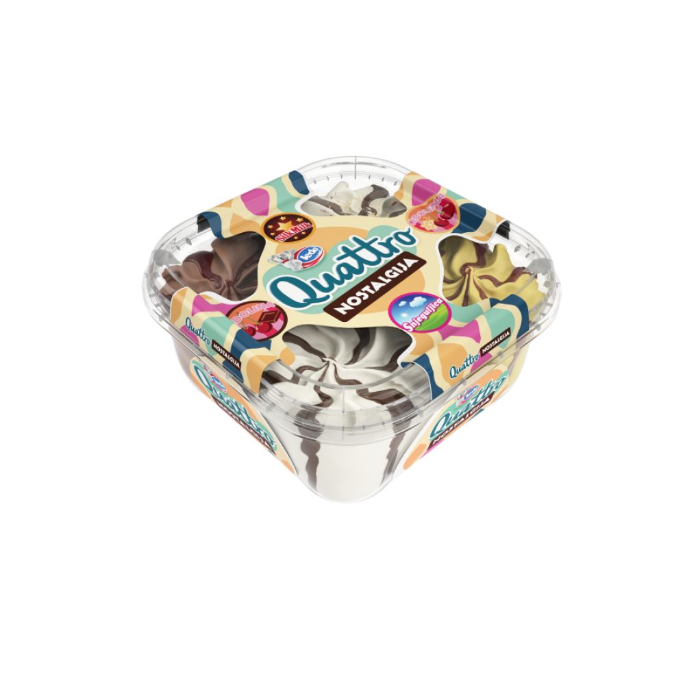 Bilo da u Quattro Nostalgiji uživate unutar obitelji ili u društvu najbližih prijatelja, kombinacija okusa koje ovaj sladoled nudi obuhvatit će sve želje ljubitelja sladoleda, posebno onih koji najljepše trenutke svog odrastanja vežu uz bezvremenske okuse Snjeguljice, Silk Milka te Ledoline.