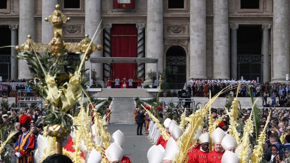 U prisutnosti oko 60.000 vjernika, slavlje Nedjelje muke Gospodnje koje je predvodio papa Franjo započelo je spomenom ulaska Gospodinova u Jeruzalem, o kojemu je pročitan odlomak iz Markova Evanđelja, a koji je prethodio misnom slavlju. Papa je blagoslovio i svetom vodom poškropio maslinove grančice, simbol današnjeg dana, koje su vjernici okupljeni na Trgu svetoga Petra držali u rukama. Uslijedila je procesija, od središta trga prema bazilici, s više od 400 „palmonoša“.