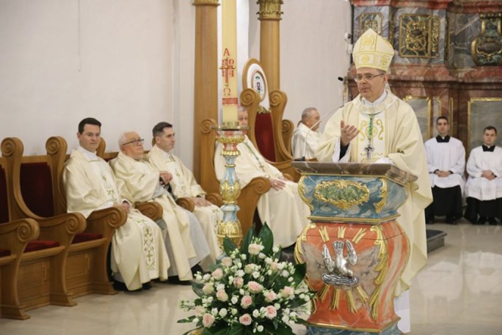 Pozdrav „Mir vama“ koji biskup na početku mise upućuje zajednici isti je pozdrav koji je Isus uputio svojim učenicima, a danas i nama, poručio je mons. Radoš uvodeći u misno slavlje. „Osim što nam upućuje ovaj pozdrav, Isus nam pokazuje i svoje rane, znakove svoje ljubavi koju i nama iskazuje. Želi dotaknuti naše rane kako bi nas ozdravio“, istaknuo je biskup.