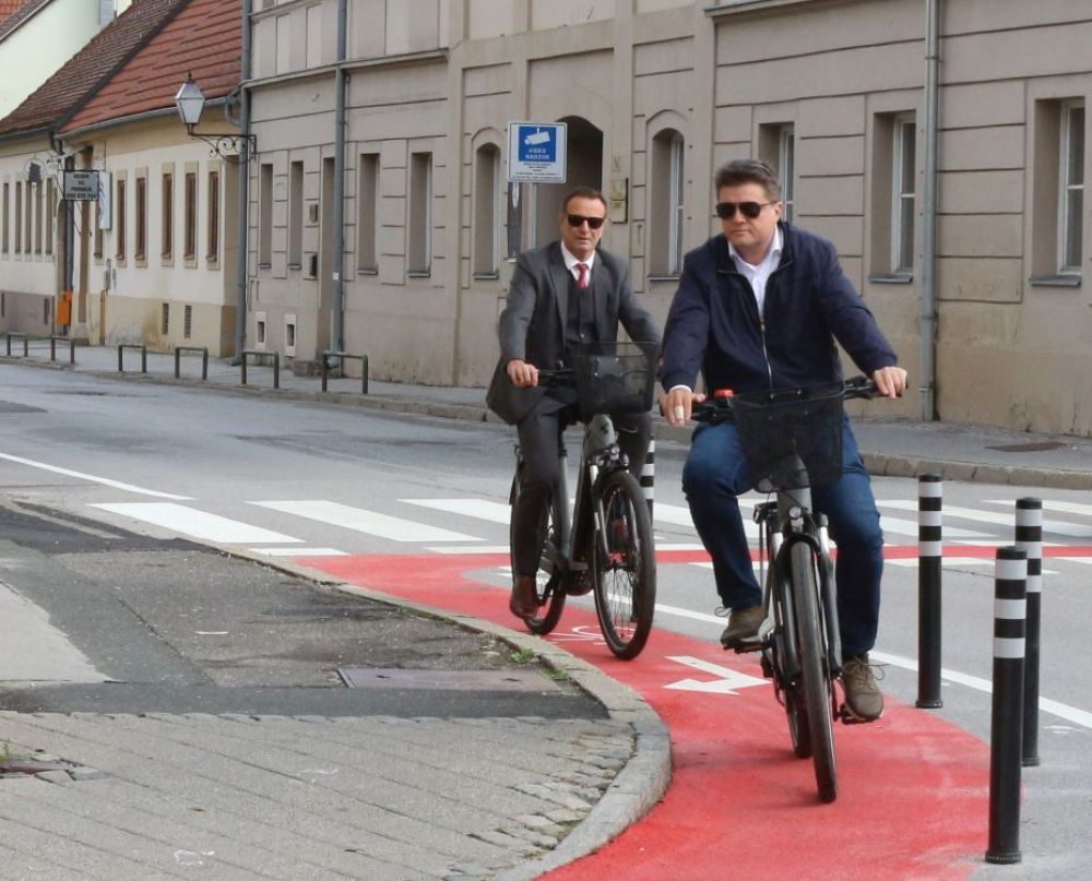 Na konferenciji za novinare su gradonačelnik dr. sc. Neven Bosilj i zamjenik gradonačelnika i zastupnik u Hrvatskom saboru Miroslav Marković i sami biciklima iskušali funkcionalnost prometnog rješenja.