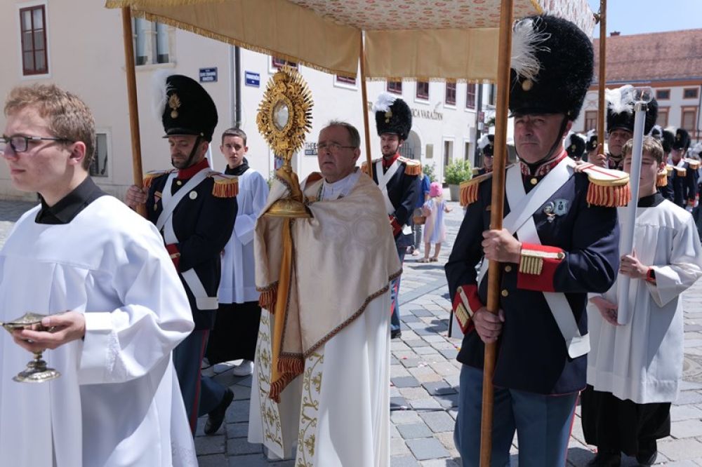 U četvrtak, 19. lipnja, vjernici župa grada Varaždina svečano su proslavili svetkovinu Presvetog Tijela i Krvi Kristove – Tijelovo. Središnje euharistijsko slavlje održano je u Varaždinskoj katedrali, a predvodio ga je varaždinski biskup mons. Bože Radoš, u zajedništvu s umirovljenim biskupom Josipom Mrzljakom, kanonicima Stolnog kaptola, svećenicima biskupijskih ustanova te župnicima i svećenicima varaždinskih župa.