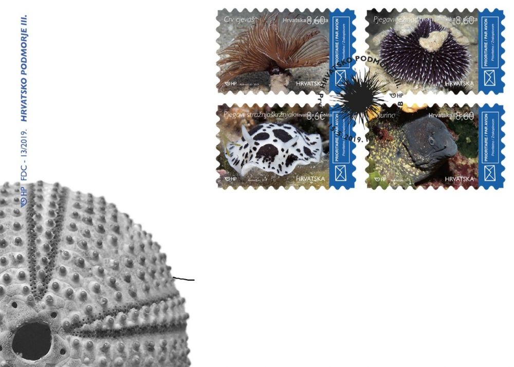 Hrvatska pošta pustit će u optjecaj 15. svibnja nove redovite poštanske marke Hrvatsko podmorje III. Motivi redovitog izdanja su crv cjevaš, pjegavi ježinac, pjegavi stražnjoškržnjak i murina. Autor fotografija je Dalibor Andres, fotograf iz Siska, a njegove fotografije prilagodila je za tisak Alenka Lalić, dizajnerica iz Zagreba.