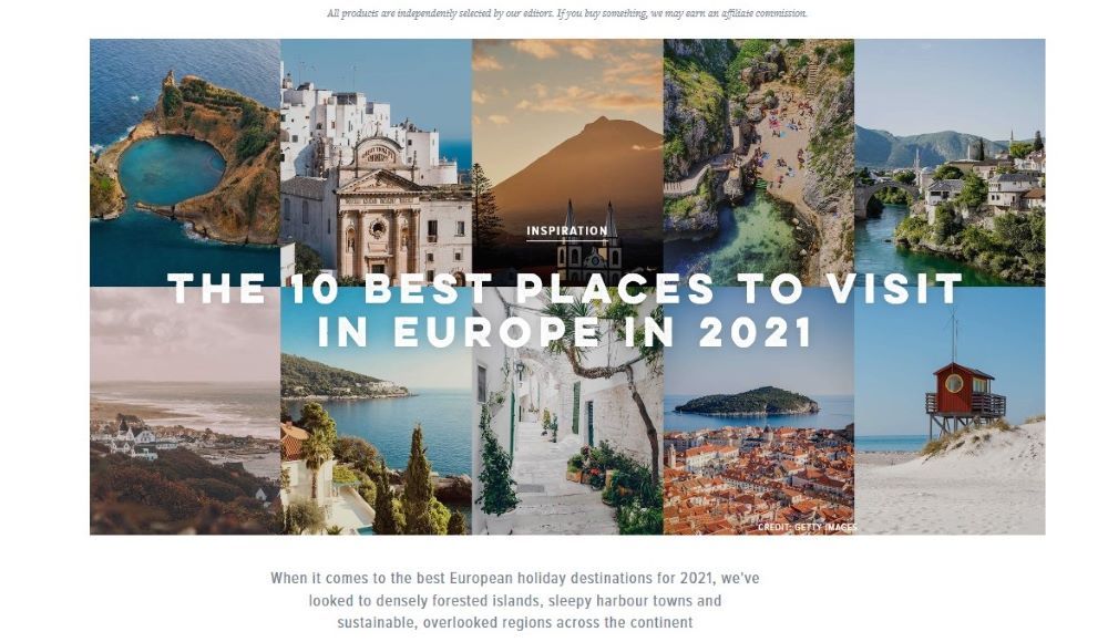 U članku „Top 10 best places to visit in Europe in 2021“ Hrvatska se našla na devetom mjestu najatraktivnijih destinacija za iduću godinu. Osim Hrvatske, na popisu su se našle destinacije poput Azorskih otoka, talijanskog Salenta, grčke Chanie, Helsinkija te Slovenije.