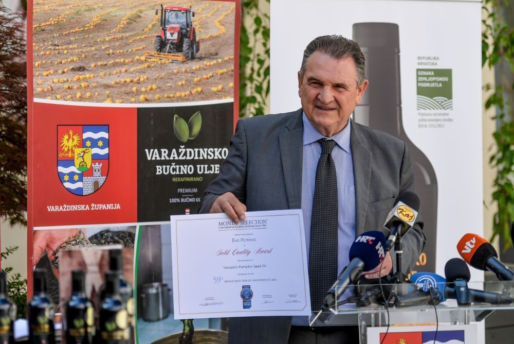 - S posebnim ponosom mogu reći da sada i na svjetskoj razini imamo službenu potvrdu vrhunske kvalitete Varaždinskog bučinog ulja. Oba naša predstavnika osvojila su zlatne medalje koje im je na svjetskoj izložbi za 2020. godinu dodijelio međunarodni institut za kvalitetu iz Bruxellesa, koji je osnovan još 1961. godine. Nismo ni bili svjesni kvalitete koju imamo, a koja se prvo potvrdila na našoj Međunarodnoj izložbi Alpe – Adria, gdje je bučino ulje Andreje Petrović osvojilo zlato, a ono Matije Patrčevića titulu šampiona. Nakon toga smo izniman uspjeh postigli ove godine na prvoj međunarodnoj „utakmici“ izvan Hrvatske, u St. Andräu u Austriji, gdje je ulje Vladimira Kurteka proglašeno šampionom, a osvojili smo čak šest zlatnih medalja. Na svjetsku izložbu u Bruxelles su uz potporu Županije prijavljena samo dva uzorka bučinih ulja najnagrađivanijih proizvođača, a oba su osvojila zlatnu medalju za kvalitetu. Čestitam Andreji Petrović i Matiji Patrčeviću! – istaknuo je župan Radimir Čačić.