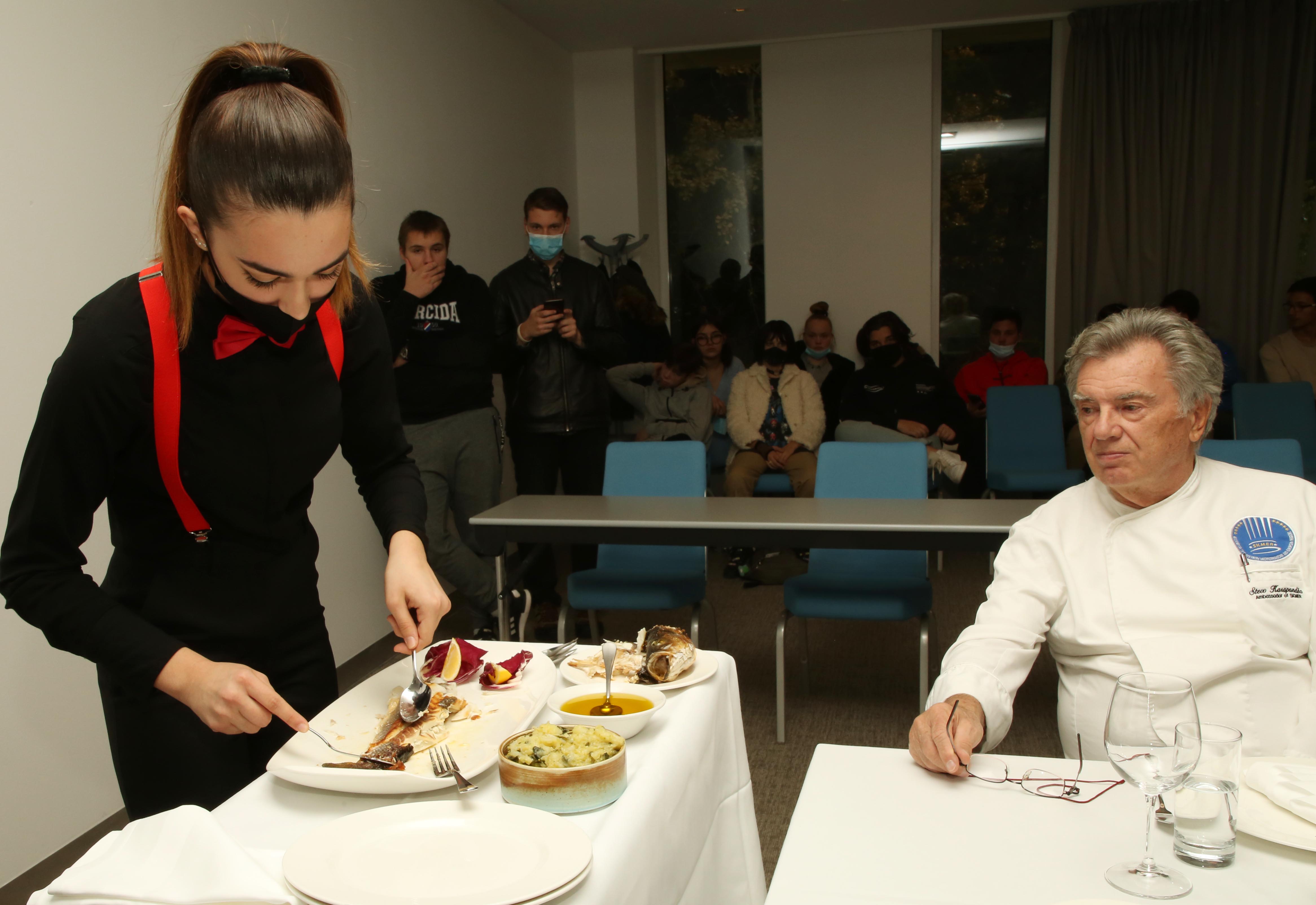 Prvog dana festivala natjecali su se timovi srednjih škola u sinkroniziranom posluživanju te u Chefs tableu, natjecanju timova konobar-kuhar u pripremi i posluživanju članova žirija. U sinkroniziranom posluživanju je pobijedila ekipa Srednje škole Metković (1. tim), dok je drugoplasirana bila SSŠ Bana Josipa Jelačića iz Sinja. Drugog dana natjecanja u kategoriji Priprema i posluživanje tatar bifteka za 2 osobe i posluživanje crnog vina zlatnu medalju je dobila Natali Marin iz pulske Škole za turizam, ugostiteljstvo i trgovinu. U kategoriji Posluživanje pečene ribe i bijelog vina prva je bila Martina Ptujec iz Srednja škole Zabok. Matea Kolar iz Škole za turizam, ugostiteljstvo i trgovinu Pule osvojila je srebrnu medalju. Najbolji konobar Grand Gourmeta 2021 je Martina Ptujec iz Zaboka.