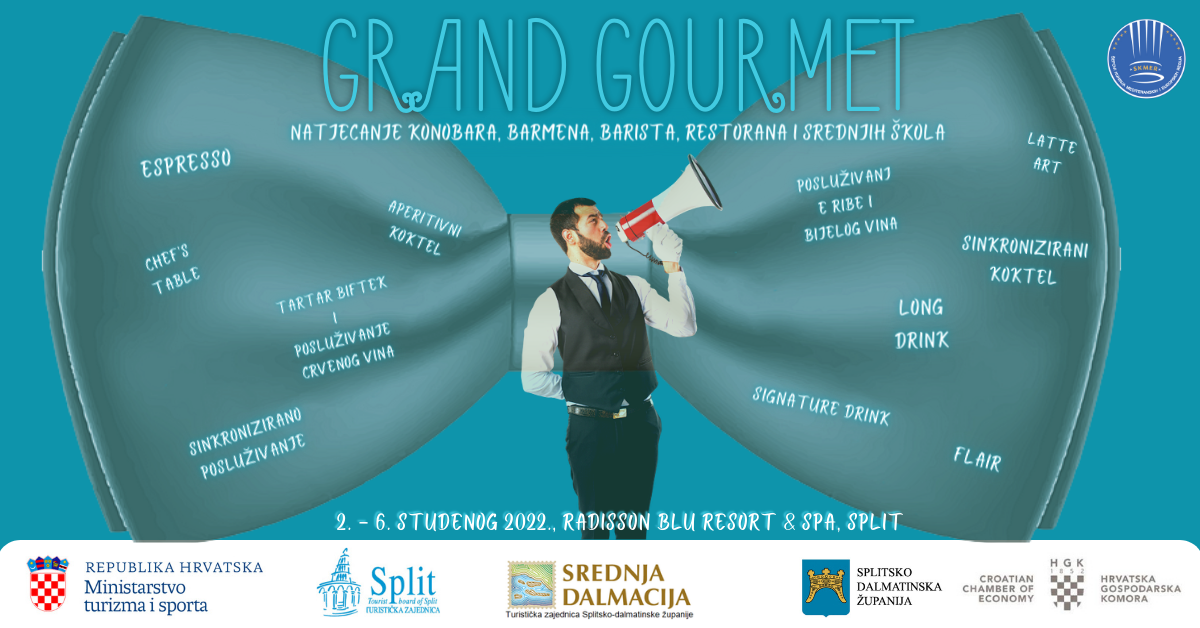 Natjecati se i pokazati vještine, a pri tom pratiti svjetske trendove u posluživanju i pripremi kave, koktela, jela i pića tek su dijelovi priče Grand Gourmeta, natjecanja koje organizira udruga Šefovi kuhinja mediteranskih i europskih regija od 2. do 6. studenog 2022. godine u splitskom Radisson Blu Resort & Spa.