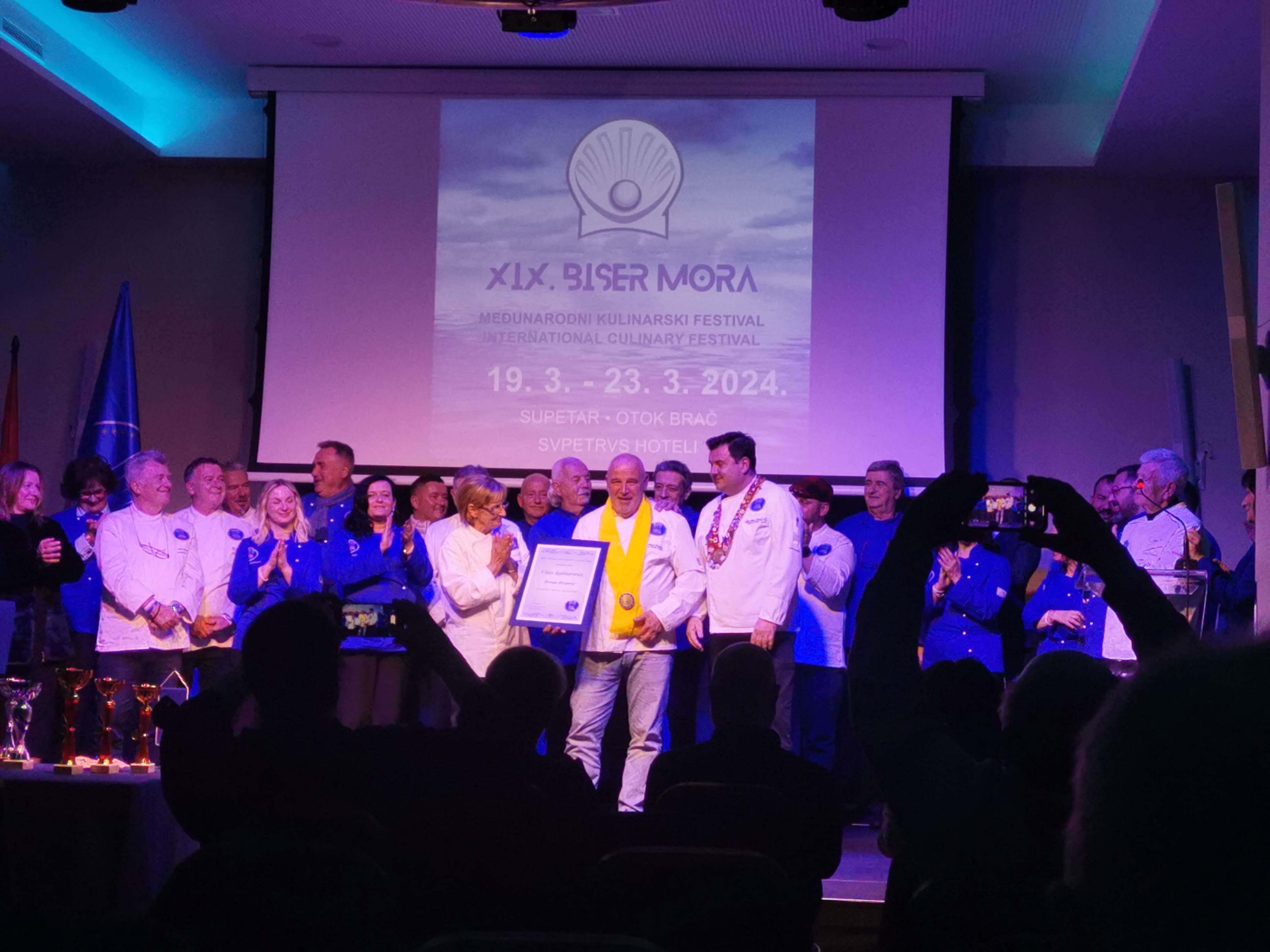 Titula „majstor kuhar 1. reda s plavom vrpcom“ dodijeljena je slovenskom Dušanu Veršecu, a riječ je o chefu bogate karijere s preko 40 godina iskustva u rada i vođenja kuhinja u hotelima Slovenije i Hrvatske, međunarodnom kulinarskom sucu i predanom istraživaču gastro baštine svoje zemlje koju redovito predstavlja na Biserima mora.