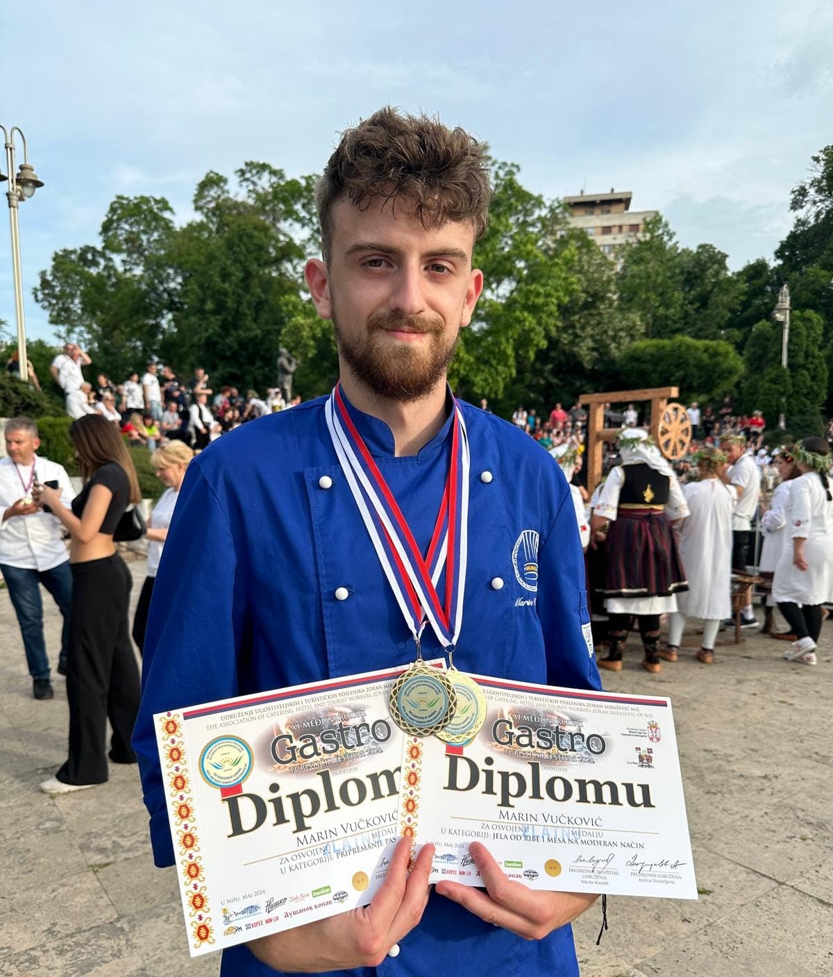 Sinjski kuhar Marin Vučković (21), inače voditelj radionica za djecu i mlade Šefova kuhinja mediteranskih i europskih regija (ŠKMER), na međunarodnom 11. Gastro turističkom festivalu u Nišu osvojio je dva zlata u juniorskom dijelu. Natjecalo se stotinjak kuhara iz 13 zemalja u 8 disciplina. Marin je u kategoriji "Pasta" pripremio tjesteninu agnolotti s gljivama, inače tipičnu za regiju Pijemont u Italiji. U kategoriji "Meso" predstavio se jelom biftek & kvasac, odnosno mesom odležanom u smjesi s mlijekom u prahu, te posluženom s kremom od preprženih komadića cvjetače uz dodatak kvasca i maslaca. Umak za biftek Marin je radio od karameliziranog luka s vinom.