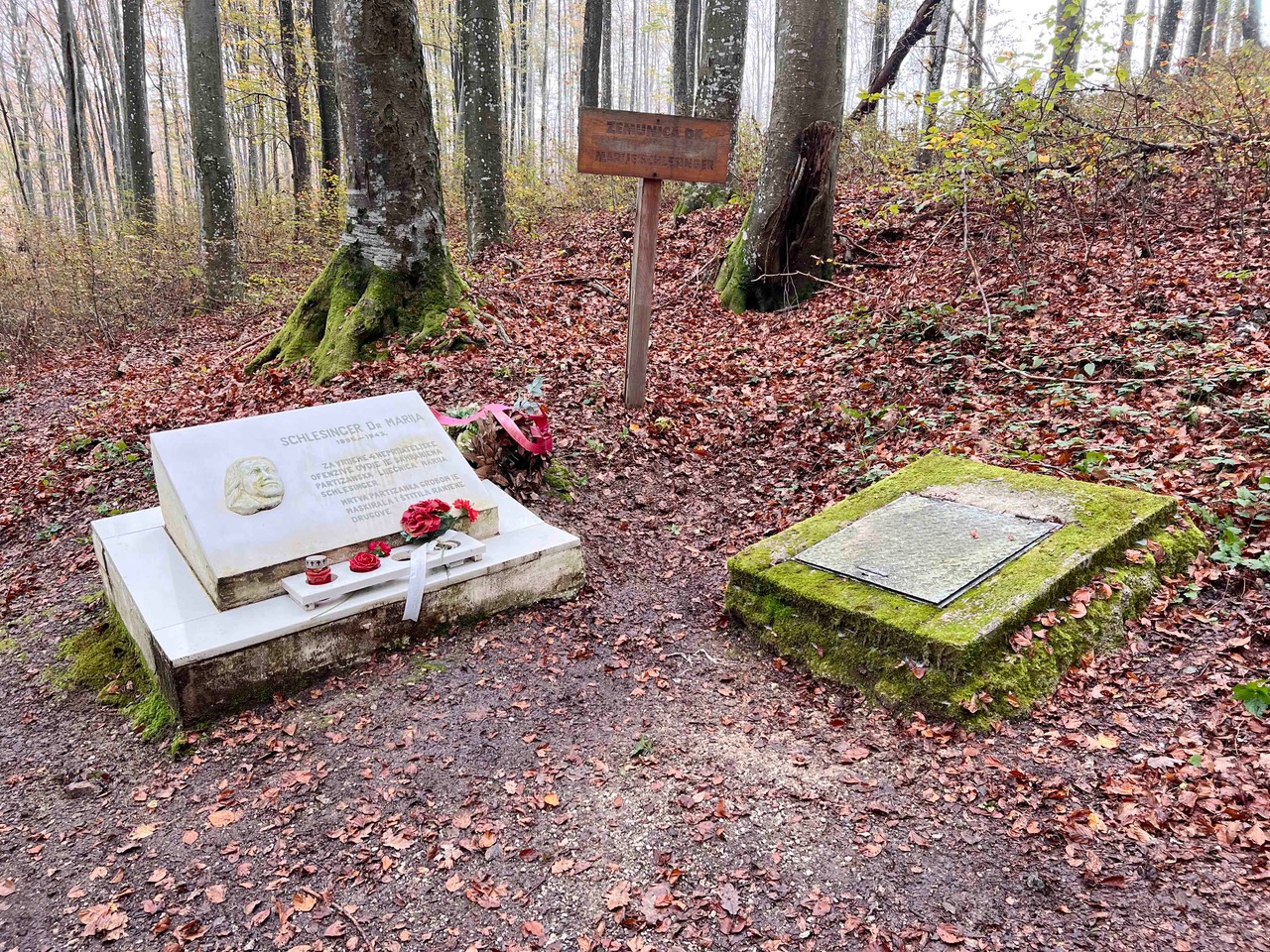 Liječnica Maria Schlesinger, Židovka poljskog porijekla, iz Zagreba je došla na Petrovu goru sa suprugom i kćeri kako bi sačuvali život. Umrla je 1943. i prema vlastitoj želji sahranjena je pokraj partizanske zemunice. Rad na obnovi pomen-ploče na njenom grobu trajao je deset mjeseci, a za reljef na spomeniku zaslužan je akademski kipar Pero Kurobasa.