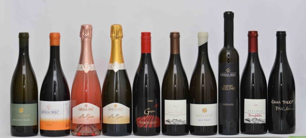 Predstavljeno je deset vina 1. LaPjen classic 2020 (bijela kupaža) G. 2. LaPjen rose 2020 G. 3. Manzoni 2022 P. 4. Sivi pinot 2022 P. 5.Chardonnay sur lie 2019 P. 6. Portugizac 2023 G. 7. Dornfelder 2022 P. 8. Crni pinot 2022 (vino još u bačvi) P. 9. Pinot sivi orange 2019 G. 10. Rajnski rizling IB Gregorić.